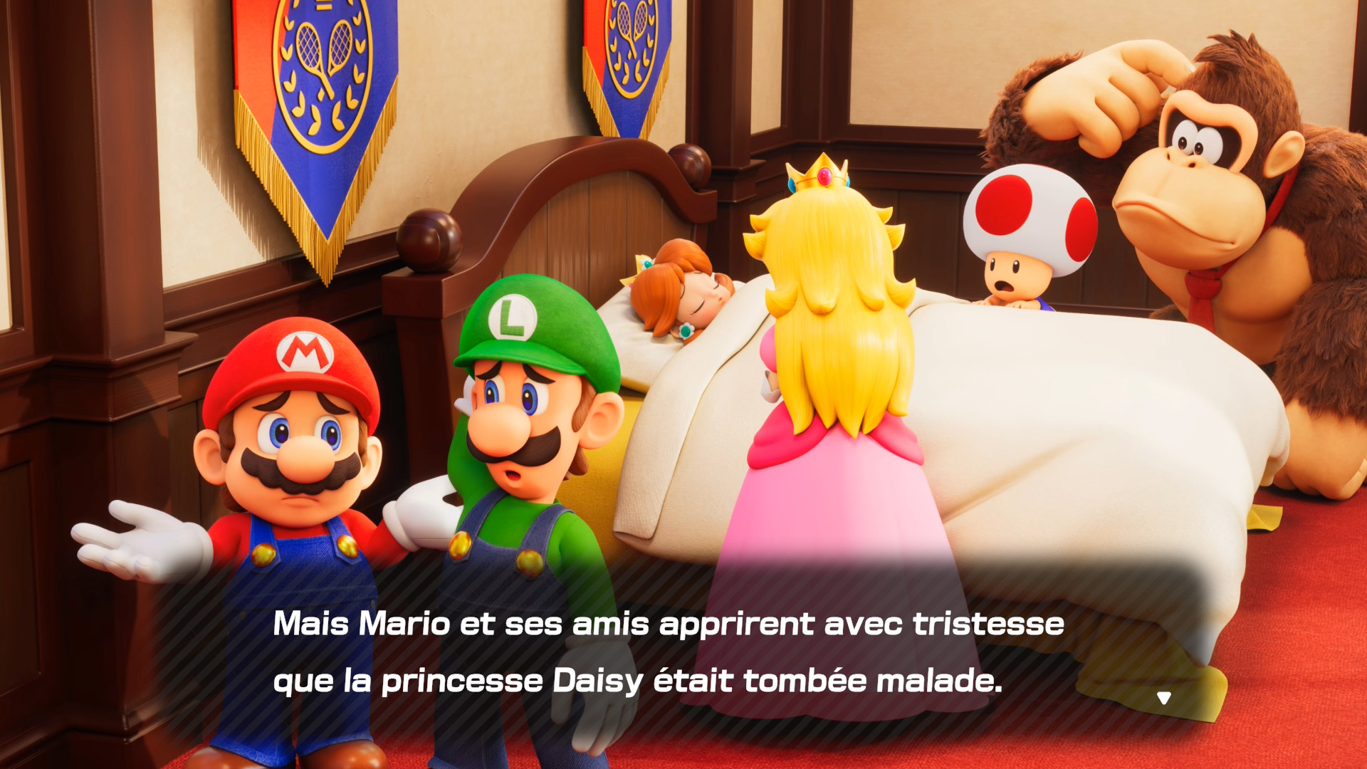 Un peu comme Mario Tennis Aces, les petits gars de Camelot Software Planning sont logiquement repartis sur un tout nouveau mode aventure en guise de mode histoire. Evidemment, l’histoire dans les Mario n’est jamais transcendante de manière générale, et cette nouvelle aventure ne déroge pas du tout à la règle. Après avoir récupéré un fruit d’or afin de guérir la Princesse Daisy gravement malade, nos pauvres frères moustachus, Peach ainsi que Wario et Waluigi, se font réduire à l’état de bébés par une mystérieuse entité maléfique en voulant s’enfuir.