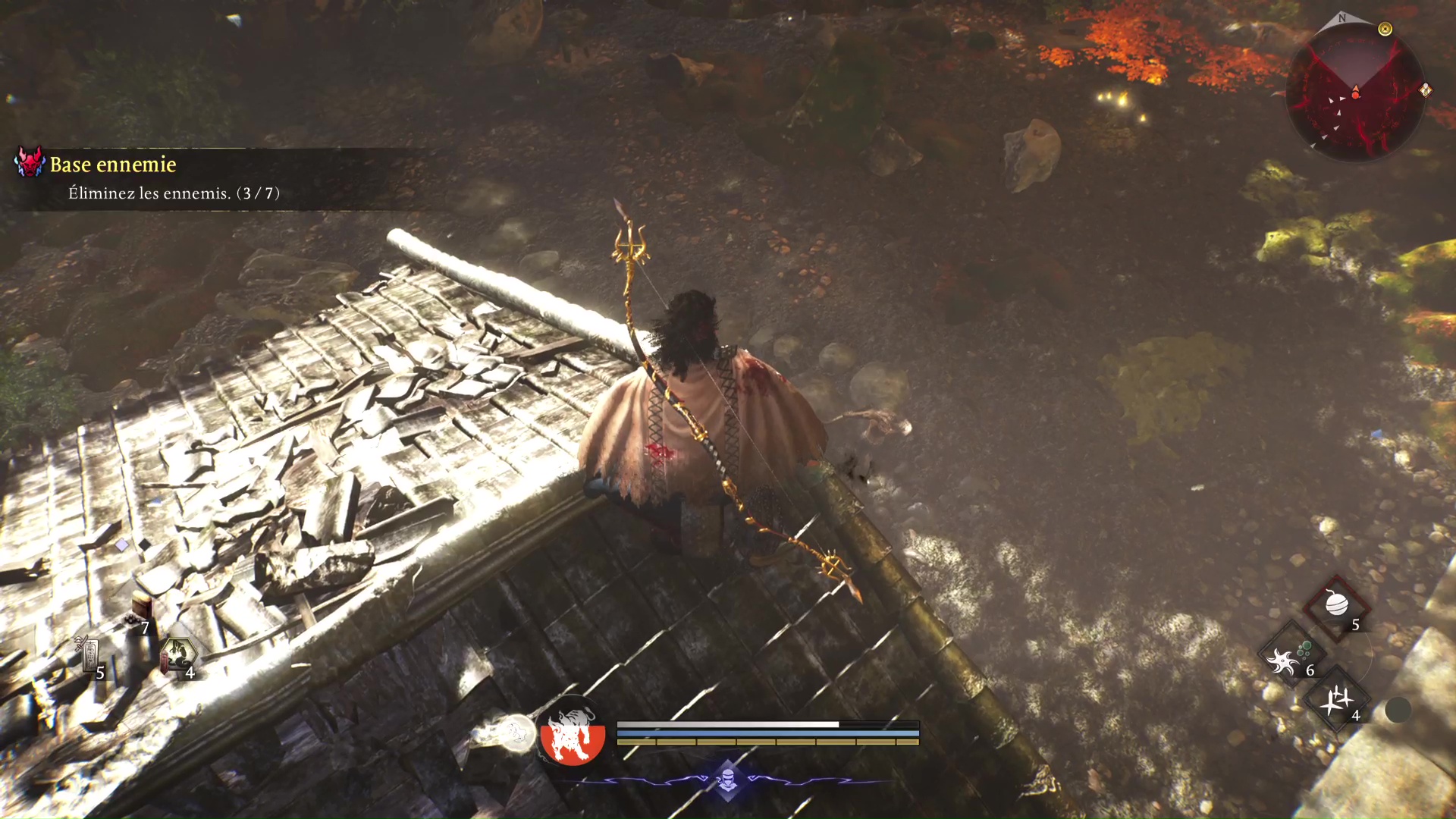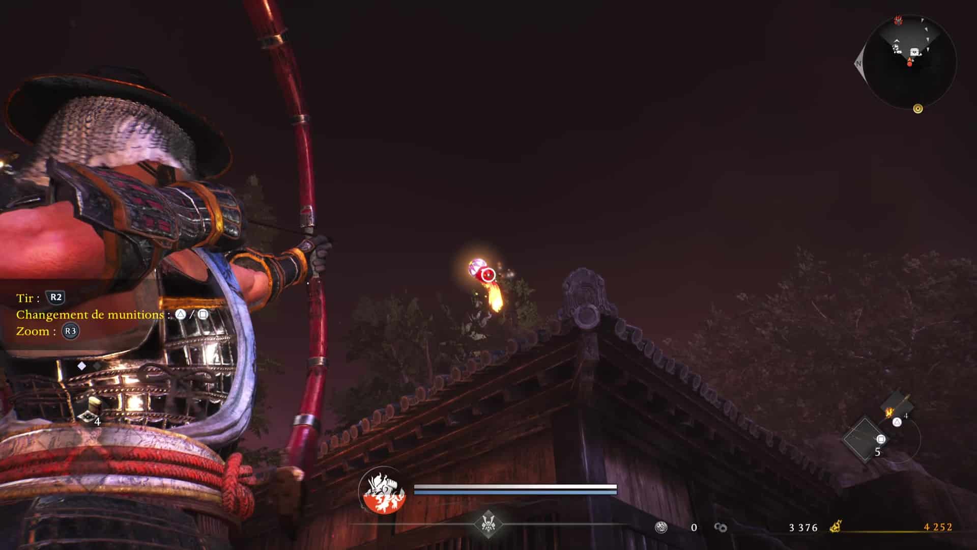Aussi, les quêtes annexes, ou « Mythes », s’avèrent rarement passionnantes puisqu’elles sont souvent données par des esprits désincarnés, demandant d’aller à un point A, puis B, voire C avec presque toujours, à un moment donné, un combat à gagner contre un yokai puissant ou un groupe. Restons beau joueur, il faut admettre que ce gain de liberté d’approche permis par les zones ouvertes procure un certain plaisir. S’accroupir et réaliser discrètement une attaque redoutable dans le dos des ennemis en train de patrouiller ou pile en contrebas d’un toit sur lequel on vient de monter, on ne s’en lasse pas.