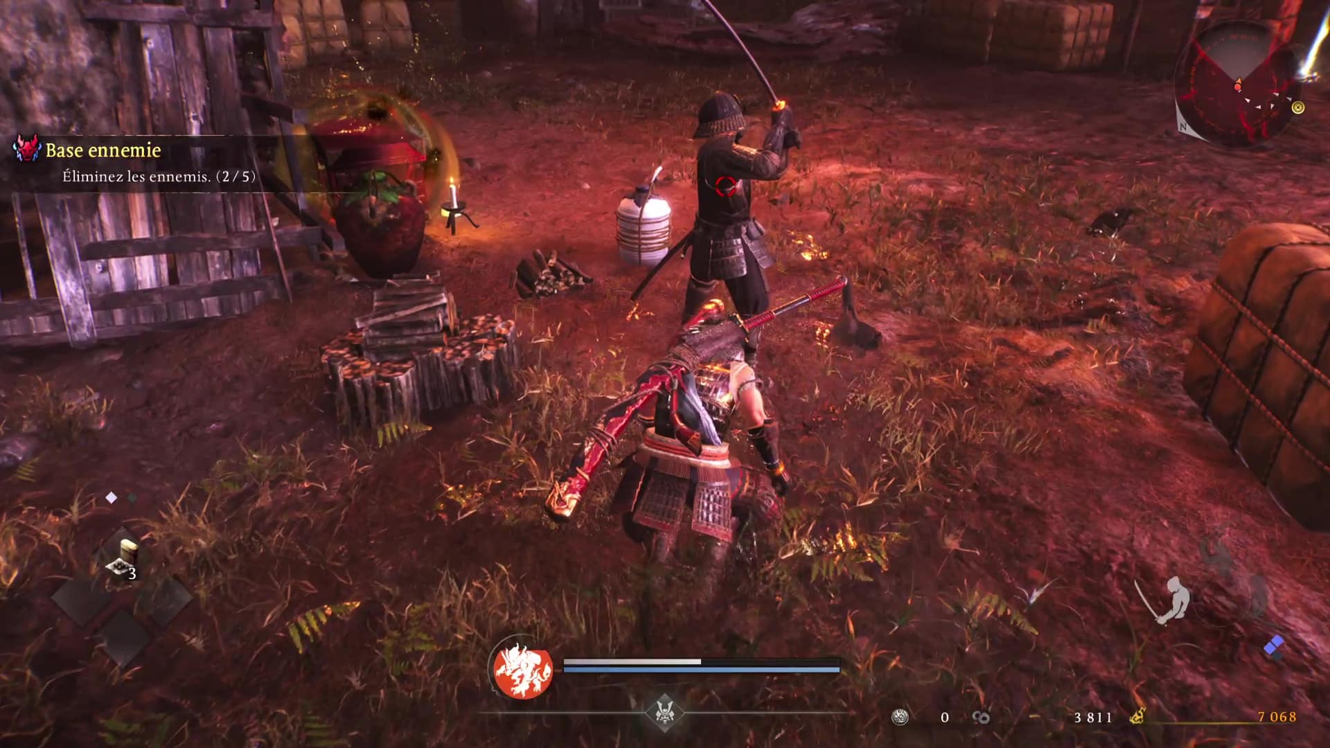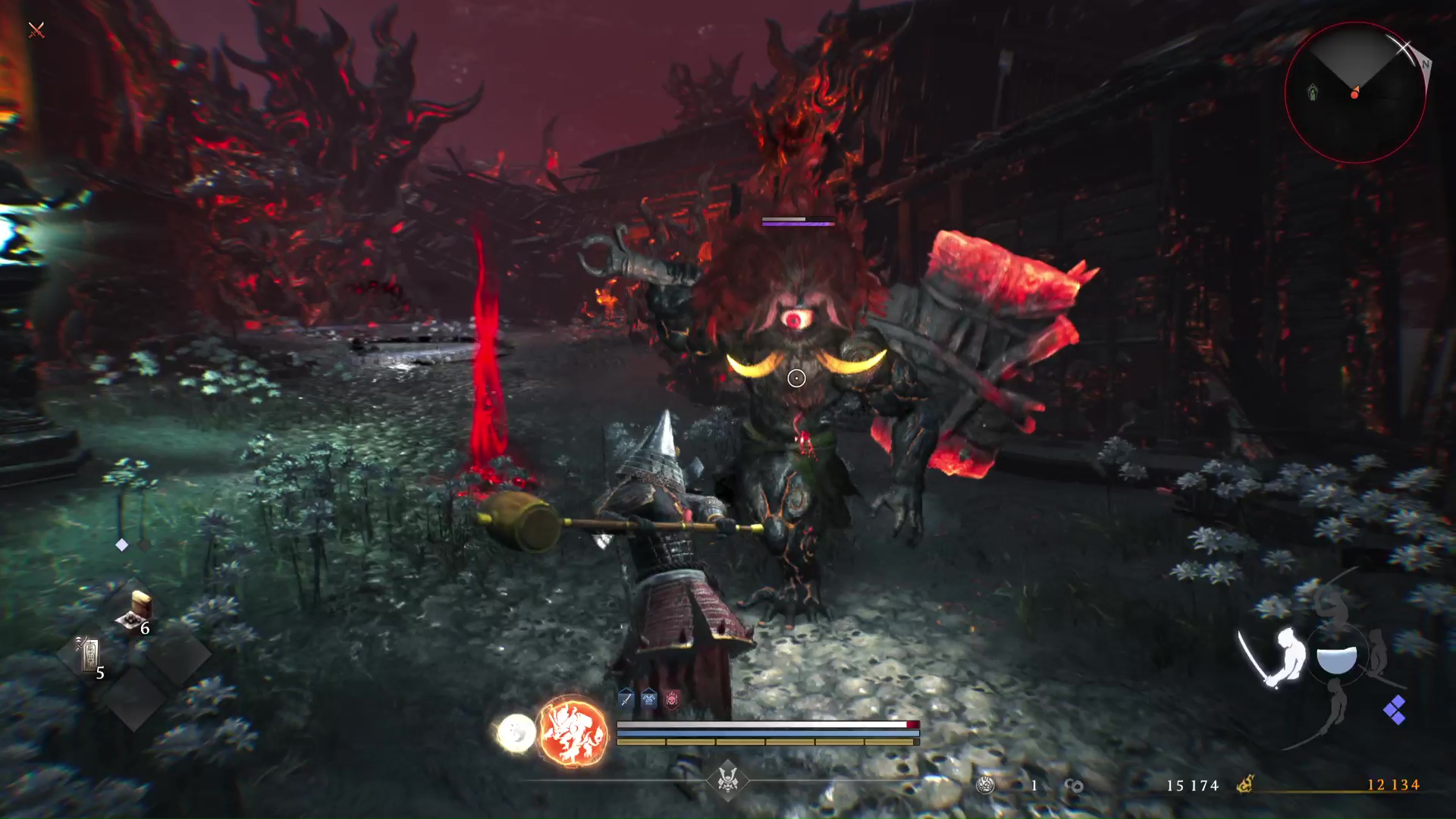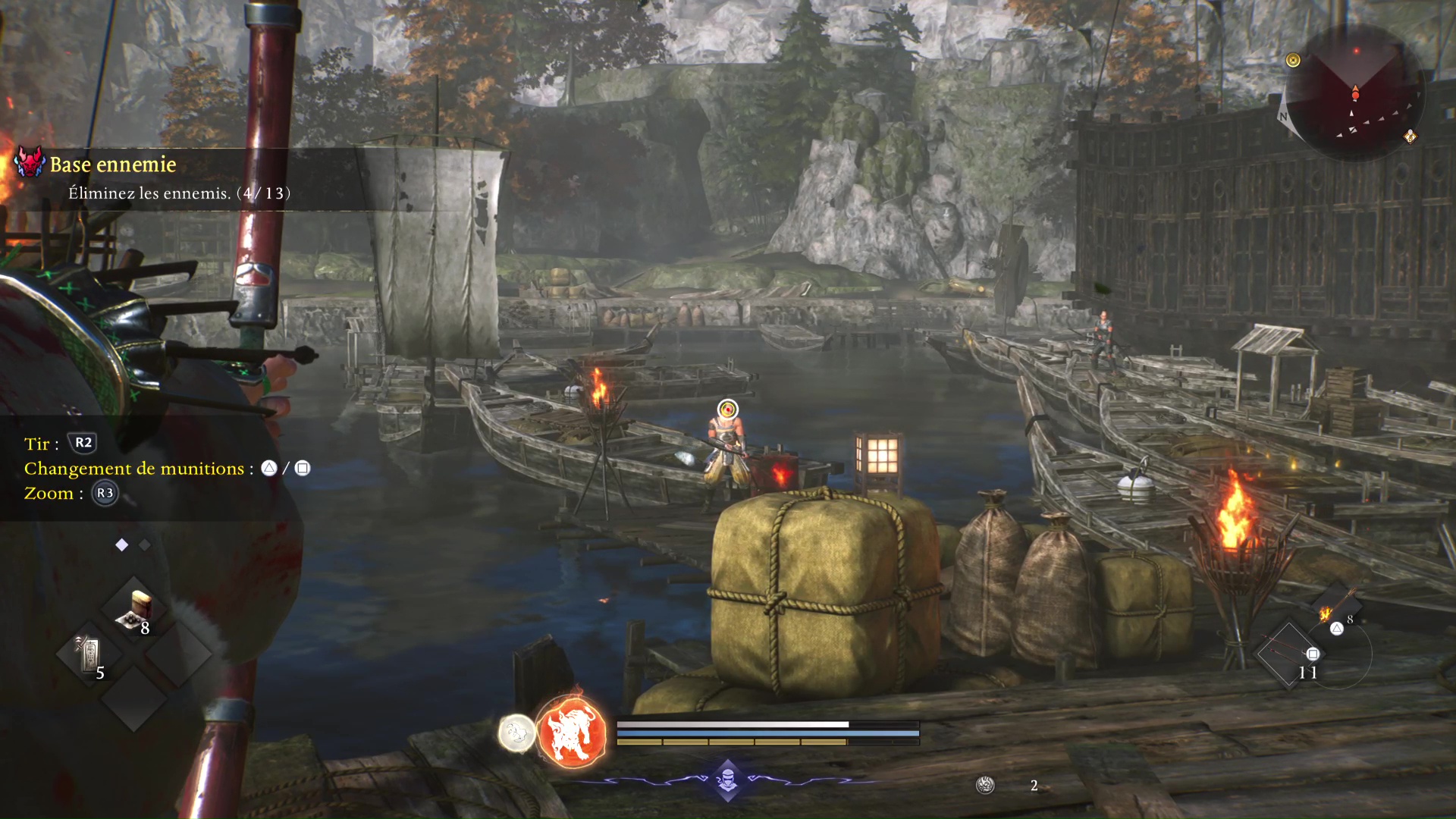 Illustration concrète lors d’un combat de boss : il est par exemple préférable d’opter pour le rôle de ninja afin de rester mobile et ainsi visualiser et esquiver ses patterns, puis lorsque l’on connait un peu mieux la bête, on sait quand frapper fort avec le samouraï. Et puis, on se construit nos propres habitudes pour chaque rôle. Se mettre en garde, parer ou réduire la jauge de Ki adverse sont des actions à privilégier du côté du samouraï, tandis que gérer un groupe d’ennemis ou réaliser des esquives répétées s’avère plus aisé aux commandes du ninja.