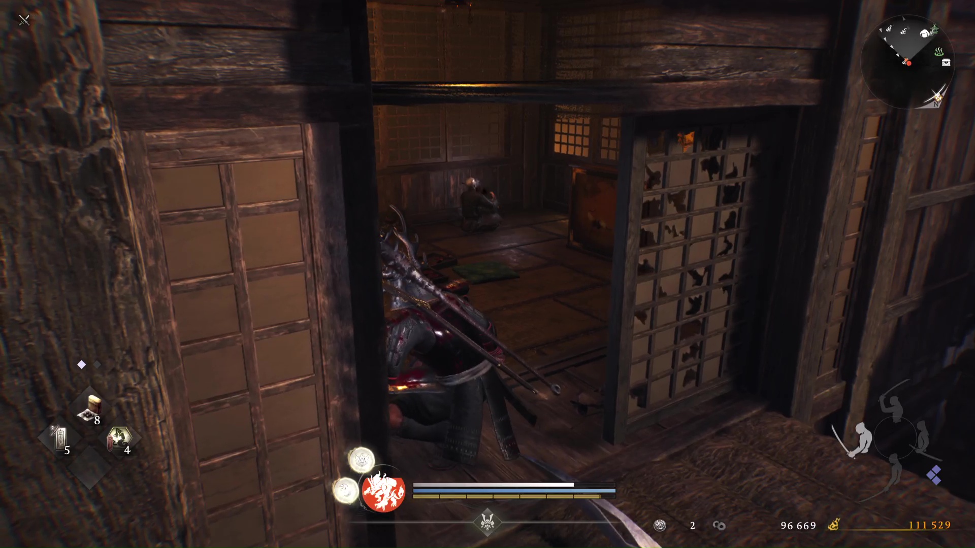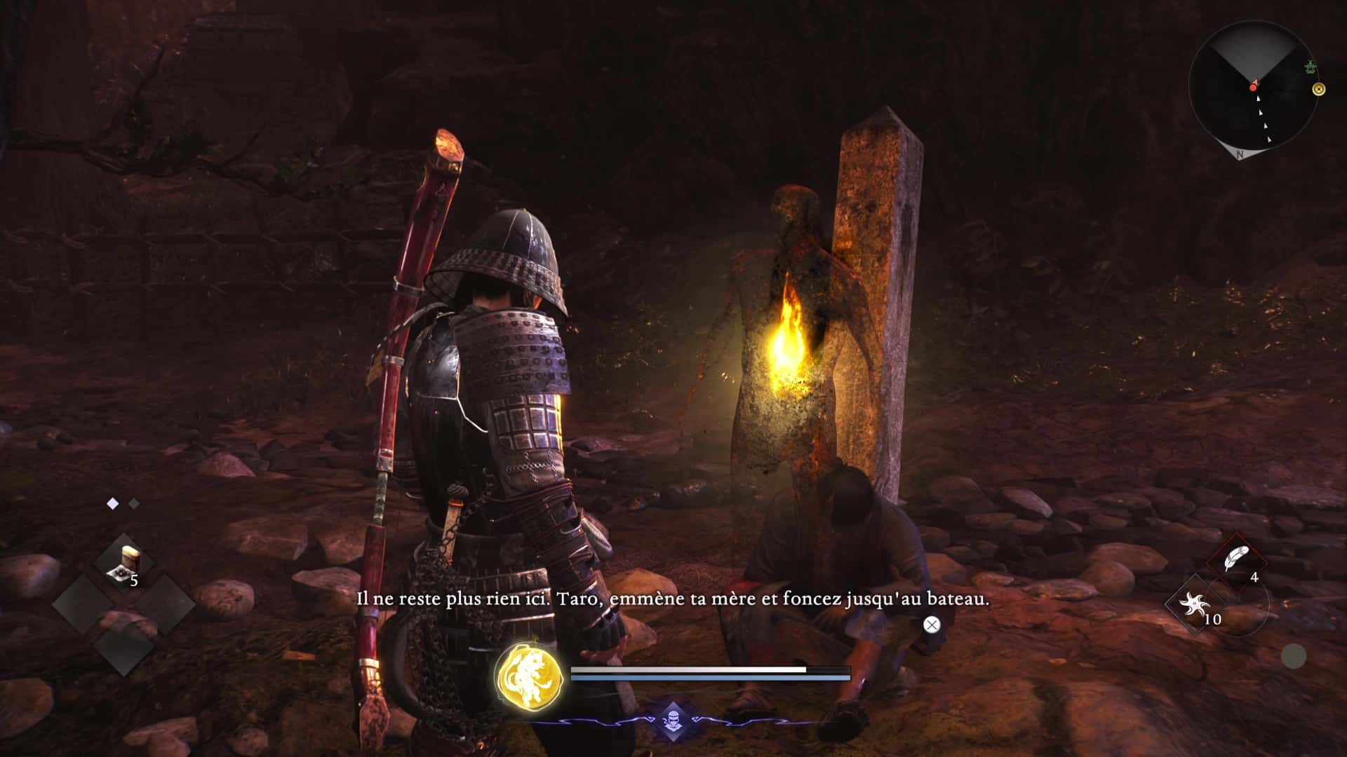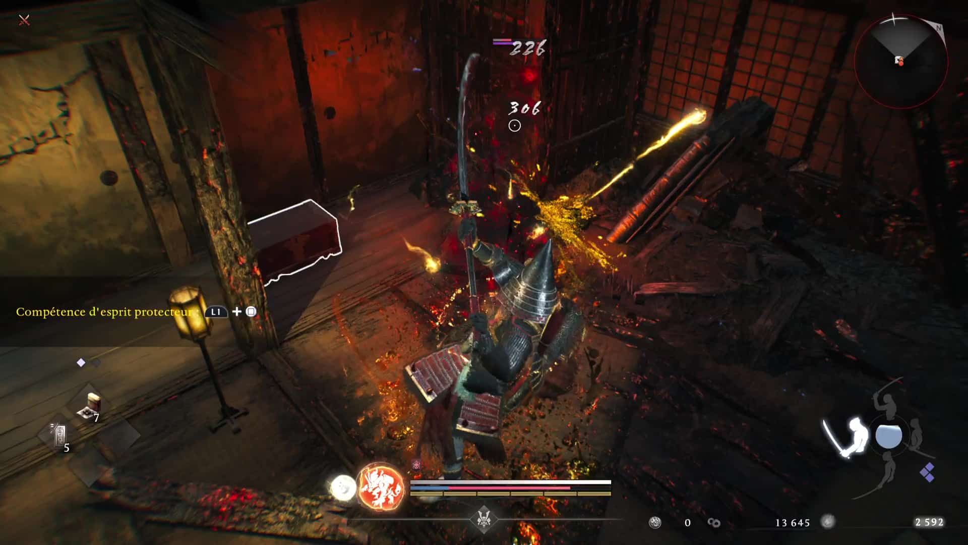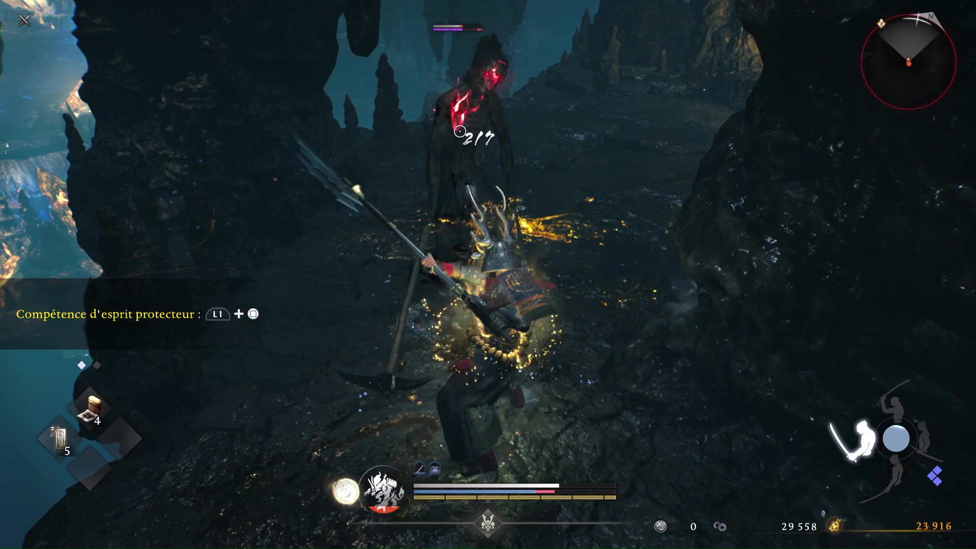 Outre la possibilité de basculer à volonté entre les rôles, cette dualité de gameplay a ceci de très malin qu’on l’apprivoise à notre rythme, selon nos besoins. Besoins qui évoluent au fil de l’aventure, au-delà le fait de pouvoir s’adapter à chaque profil d’ennemis. Il est tout à fait possible de se sentir d’abord à l’aise avec le style samouraï pendant une dizaine ou une vingtaine d’heures, ou inversement, puis de glisser presque sans s’en rendre compte en majorité vers l’autre rôle, avant de finalement trouver son parfait équilibre, propre à chacun, nous amenant à appréhender de manière optimale les dangers les plus relevés.