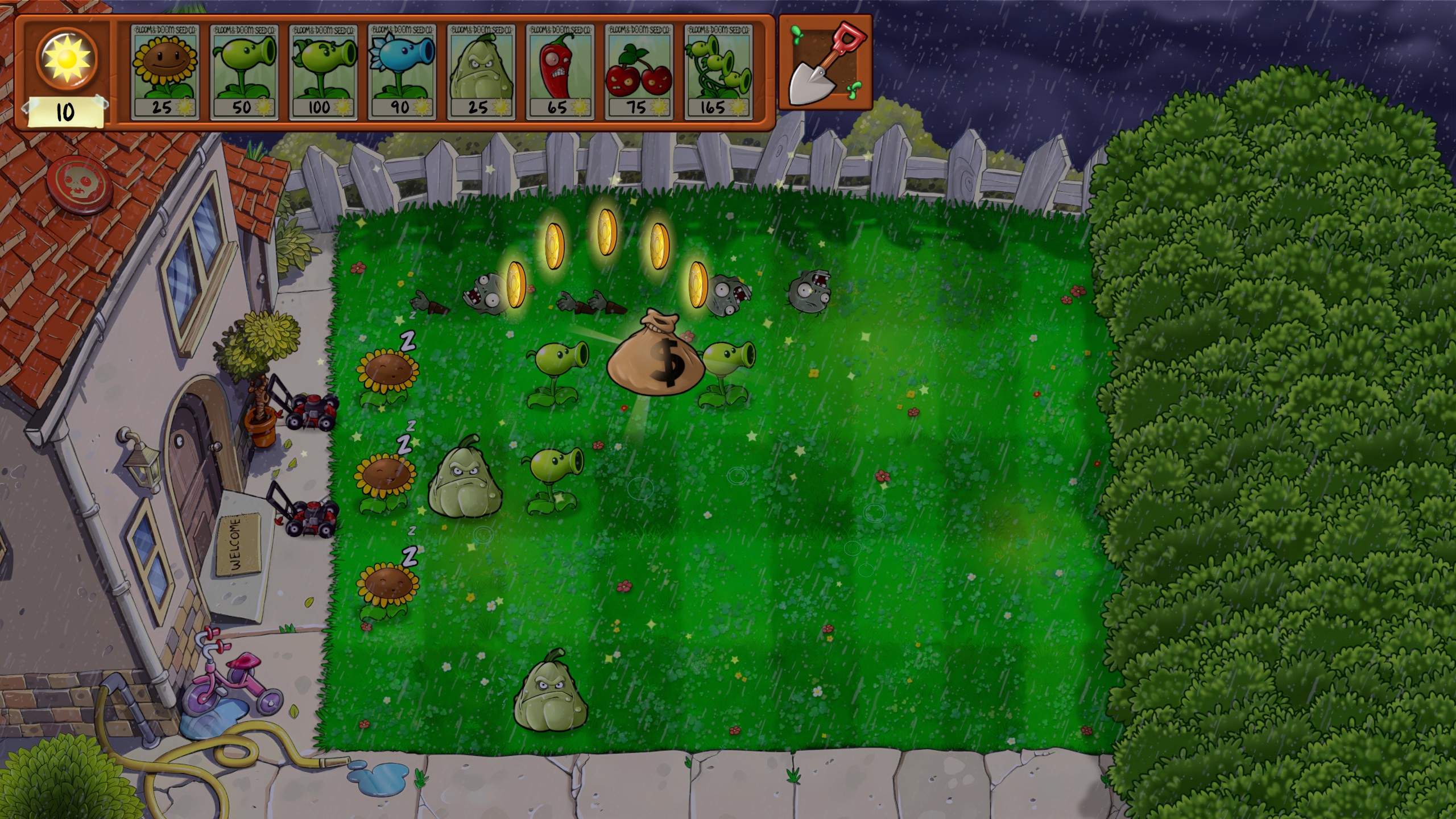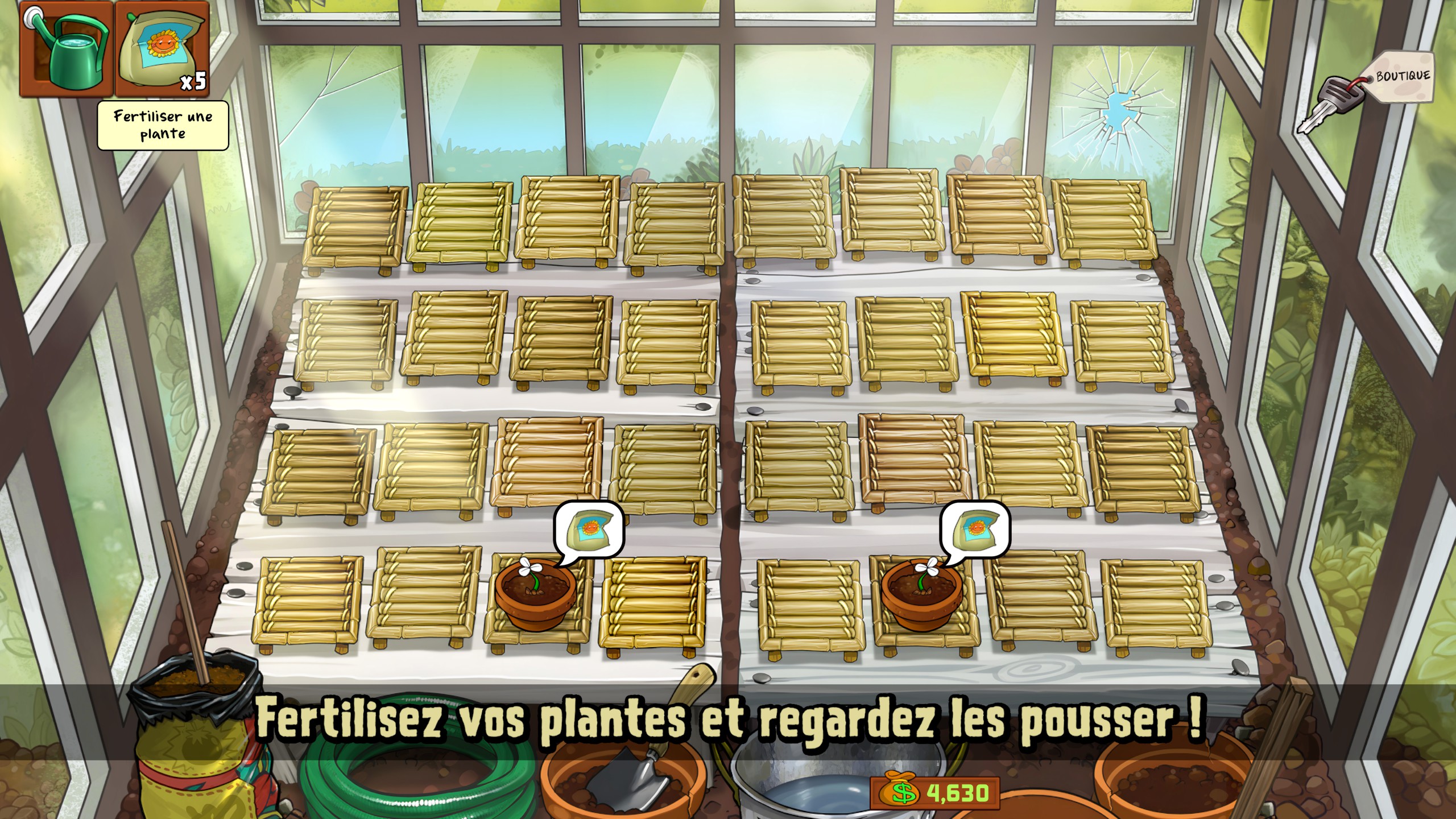 Autant dire que le principe du titre est conservé avec brio, avec également le système de boutique de Dave le Dingo. En progressant dans le jeu, vous aurez la possibilité d’acheter moult éléments comme des défenses supplémentaires pour les autres environnements comme la piscine ou le toit, voire des emplacements supplémentaires afin d’emporter un peu plus de plantes avec vous. En supplément, l’argent peut pareillement se récolter en jouant aux modes mini-jeux, énigmes ou survie, donnant aussi la possibilité d’acheter de nouvelles plantes à utiliser par la suite.
