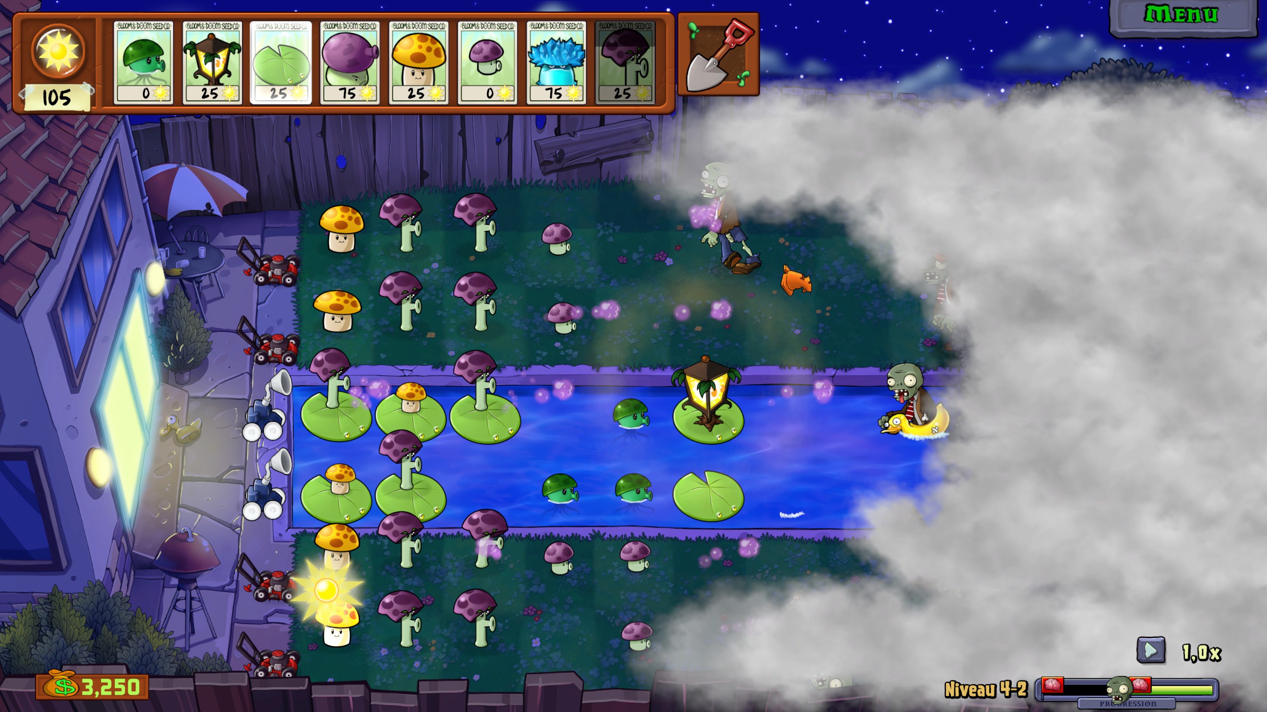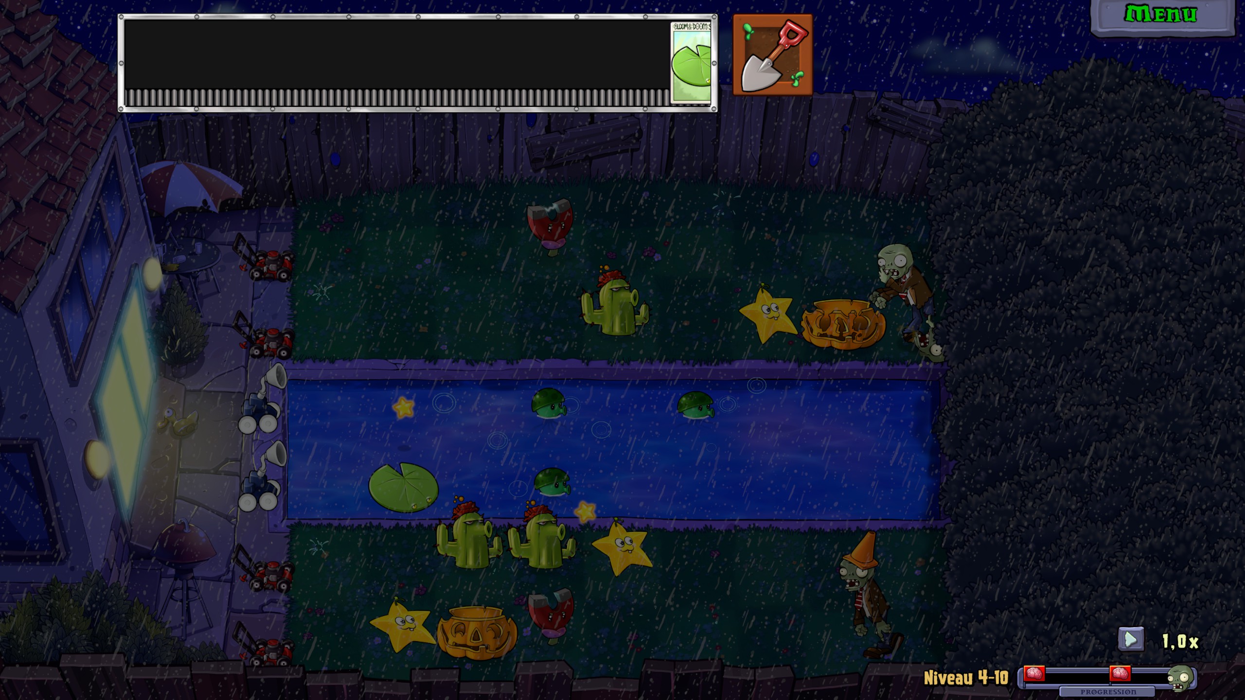 De même, la difficulté monte un poil crescendo avec de nouveaux paramètres à prendre en compte sur chaque niveau. Ceux de nuit vous forcent à opter pour d’autres champignons vous apportant des soleils étant donné que les stages de nuit ne vous en donnent pas automatiquement. De plus, chaque autre biome apporte son lot de nouvelles mécaniques comme la piscine avec laquelle vous devez obligatoirement poser des nénuphars pour ensuite assigner quelques plantes basiques.
