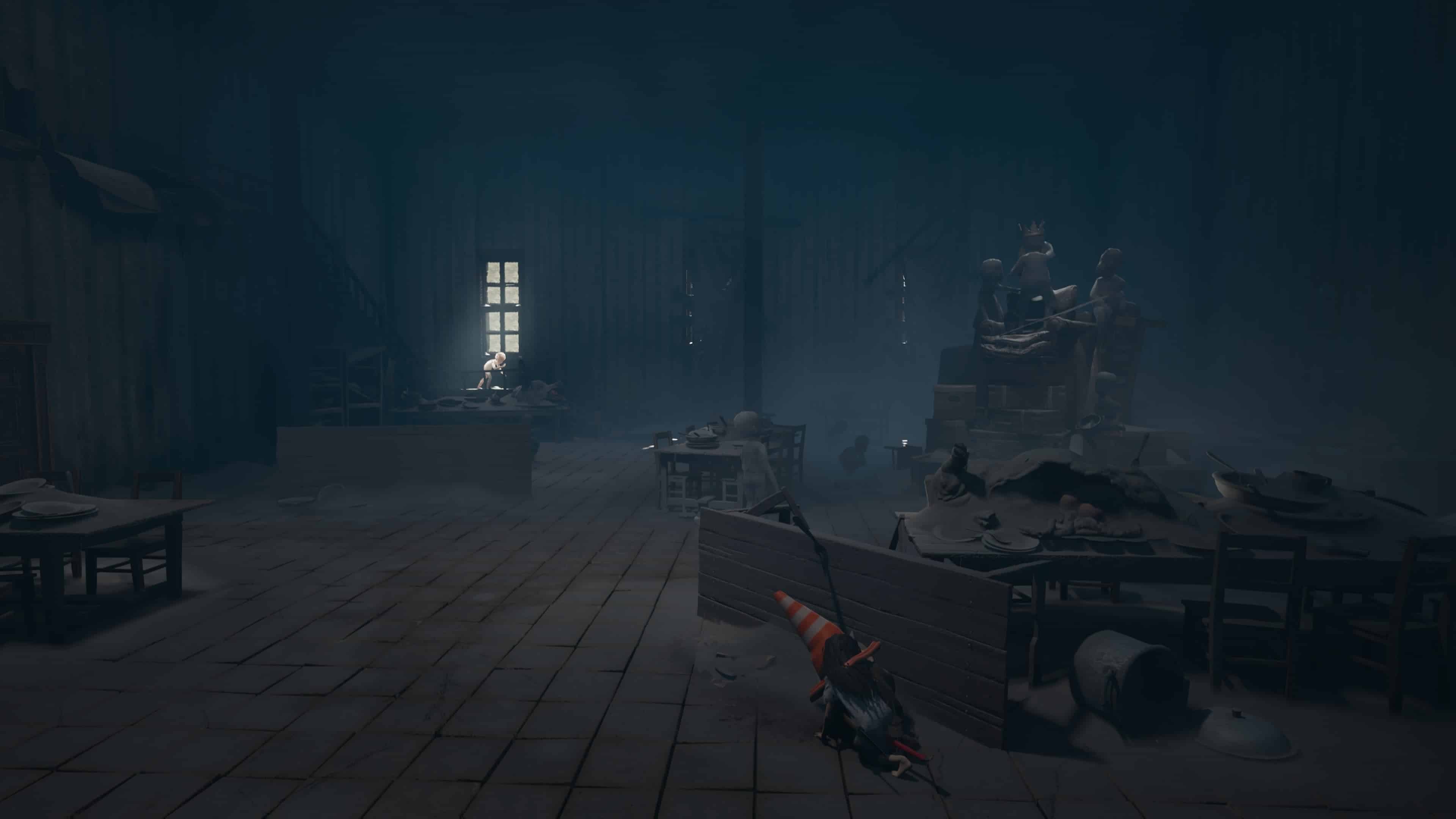 Hélas, et comme teasé un poil plus haut, les problèmes ne concernent pas que notre partenaire imaginaire. Traînées depuis Little Nightmares premier du nom, les imprécisions liées à la perspective continuent de nous jouer des tours. Un accès à la suite du niveau « caché » par un placement de caméra peu coopératif, des sauts fébriles à effectuer dans l’urgence ou une interaction qui nous passe sous le nez, les couacs arrivent bêtement.