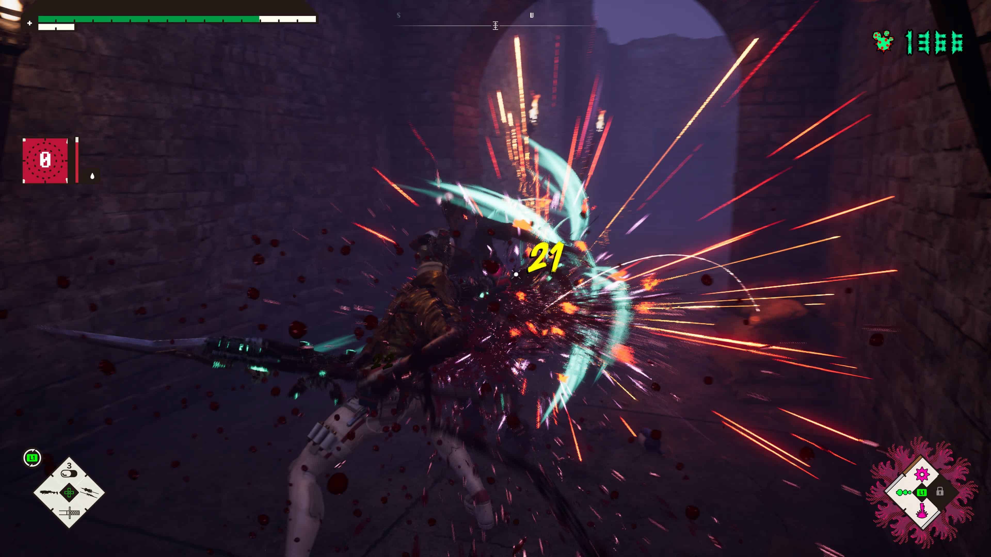 Car oui, les démons peuvent vous servir durant vos combats, et vous pouvez les planter avec des graines de bâtard. Via une salle dans le Last Night, vous pouvez aller parler à une protagoniste pouvant dévoiler les graines, et ainsi les planter. Une fois à maturation si vous attendez quelques minutes ou si vous voulez accélérer le tout moyennant de la fluomasse, vous aurez la possibilité de les cultiver, et les utiliser en guise de compétences spécifiques rechargeables. Ils seront pratiques en combat car ils pourront au choix ralentir le temps sur une zone spécifique, vous donner un peu de sang en plus, faire des dégâts électriques sur les ennemis, et j’en passe.