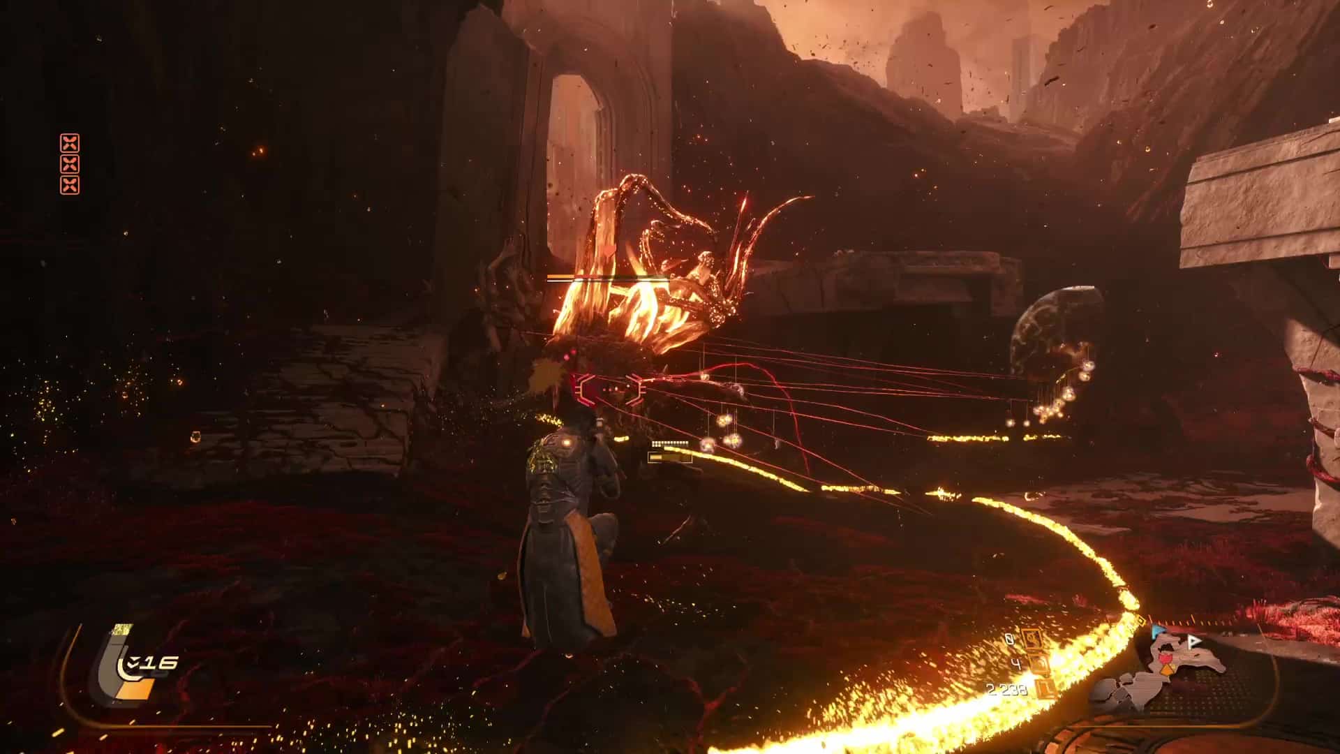 Par ces choix plus ou moins importants visant à modeler un gameplay déjà sensationnel à travers leur dernière création, Housemarque parvient à le magnifier dans Saros. La gymnastique entre les boutons s’en retrouve encore plus intéressante et dynamique et chaque combat est un apprentissage supplémentaire vers la maîtrise d’un gameplay si parfaitement huilé que l’on en reste bouche bée.