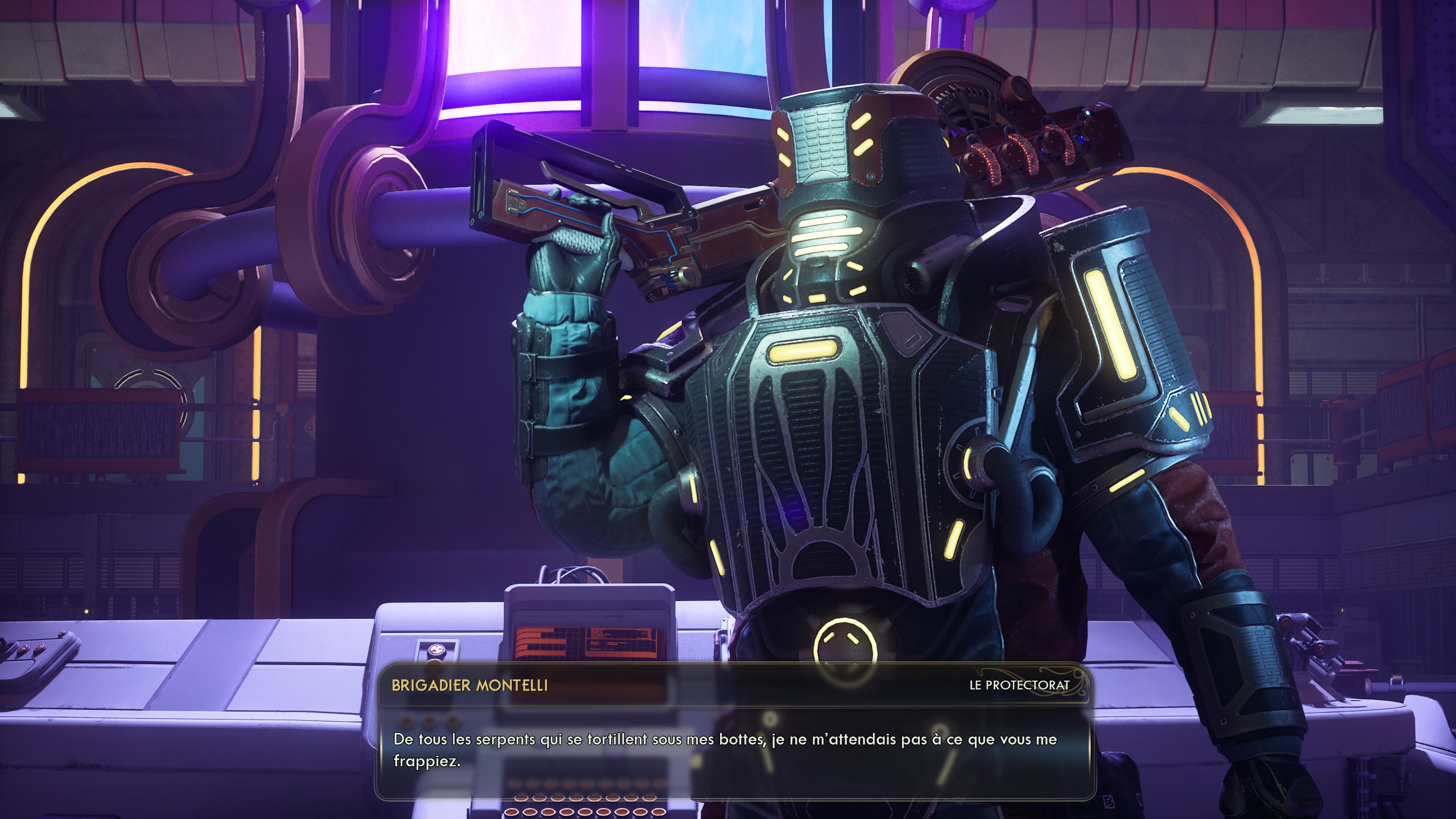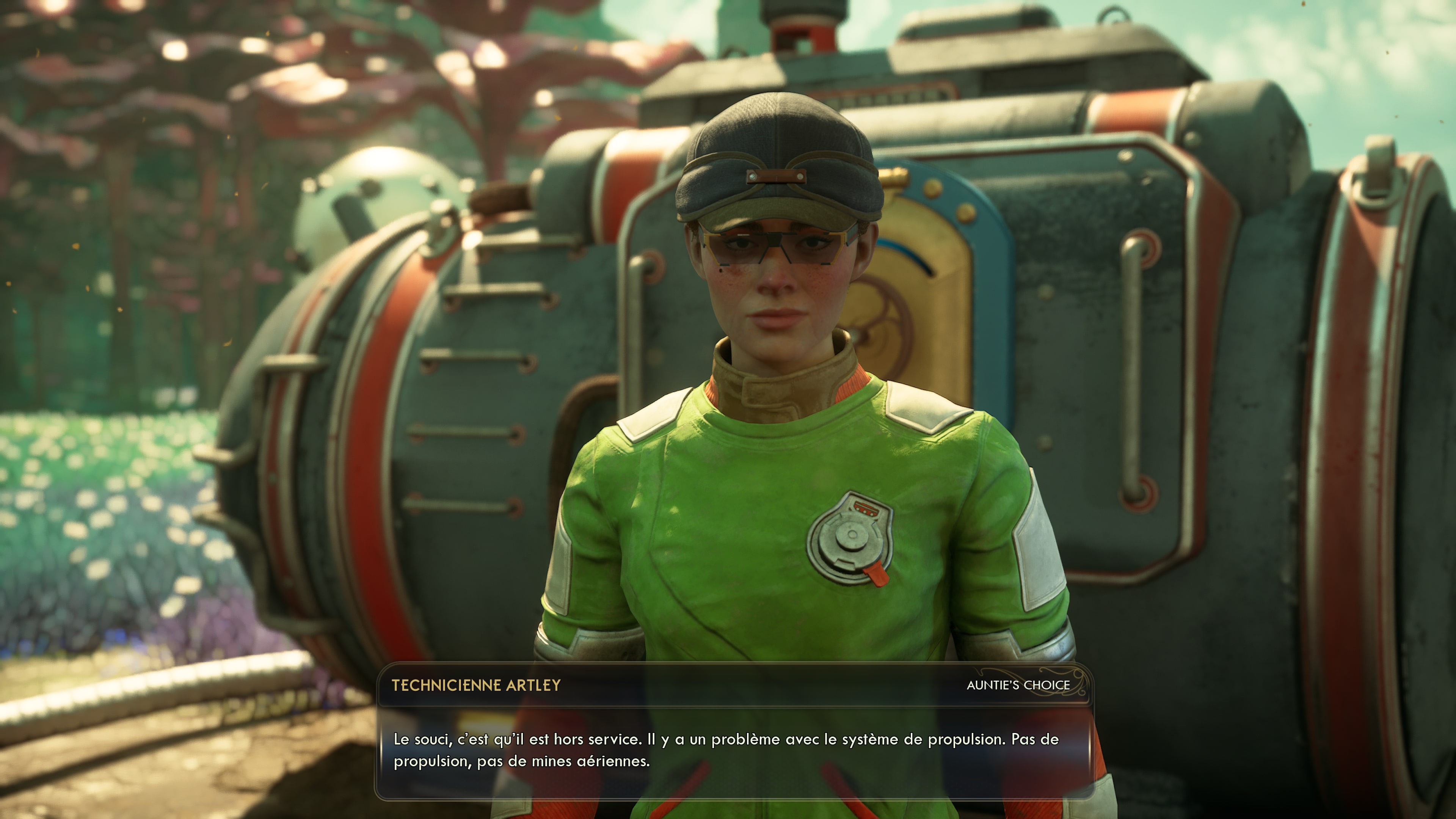 Enfin, le troisième groupe devrait rappeler des souvenirs aux joueurs du premier épisode. Il s’agit de la mégacorporation « Auntie’s Choice », fusion des compagnies « Auntie Cleo » et « Spacer’s Choice » qui étaient toutes deux présentes dans The Outer Worlds. Un quatrième groupe, plus discret et opportuniste, a par ailleurs quelques cartes à jouer dans ce conflit planétaire, mais nous vous garderons la surprise sur son identité ici.