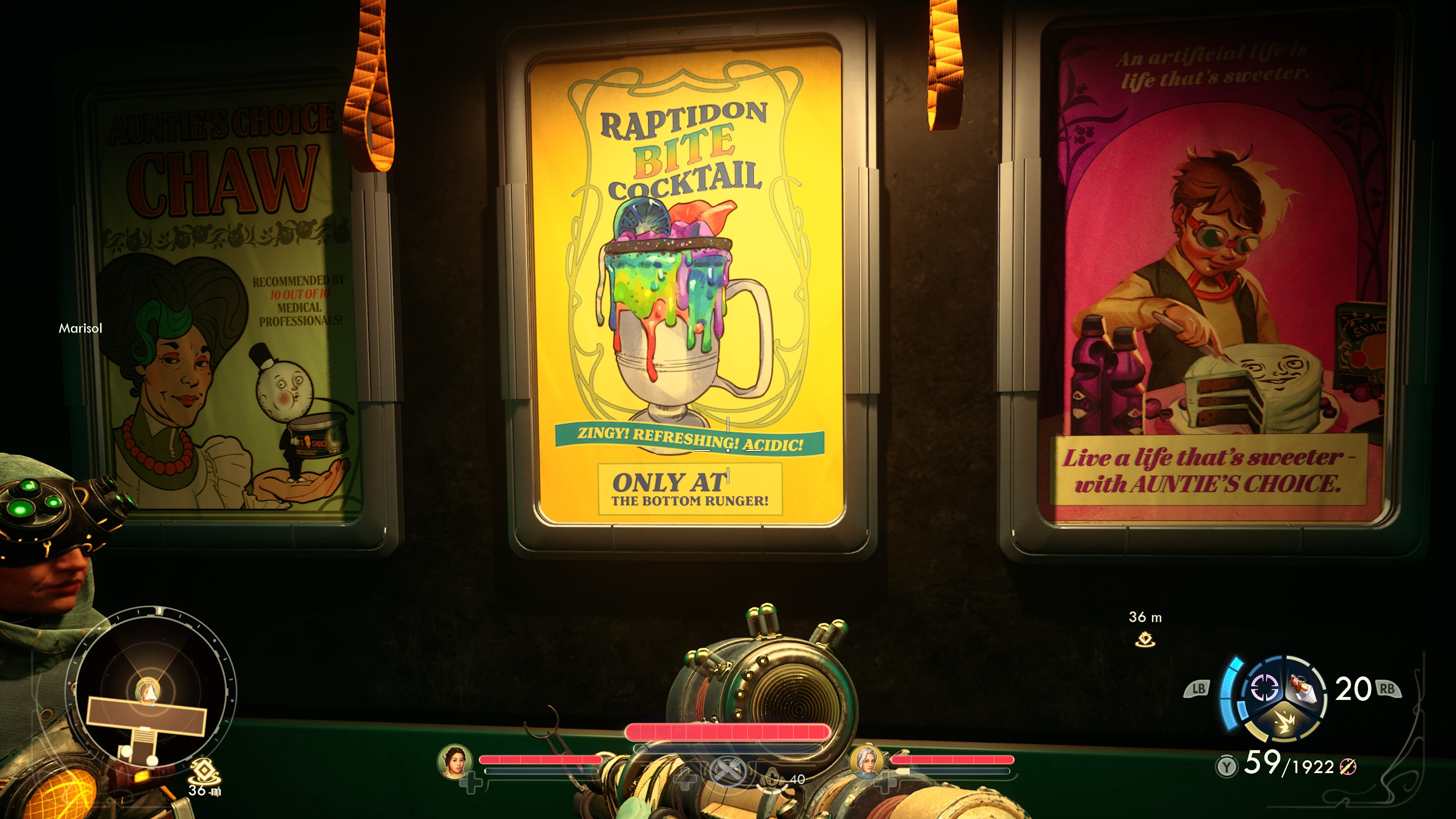 Pas foncièrement immenses, elles bénéficient cependant toutes d’une ambiance totalement différente aussi bien sur la faune que sur la flore. Visuellement, nous avons vraiment apprécié chacun des lieux proposés, surtout le vaisseau mère d’Auntie’s Choice qui pullule de slogan publicitaire lumineux, de néons en tout genre et de commerciaux prêts à vous vendre tout et n’importe quoi.