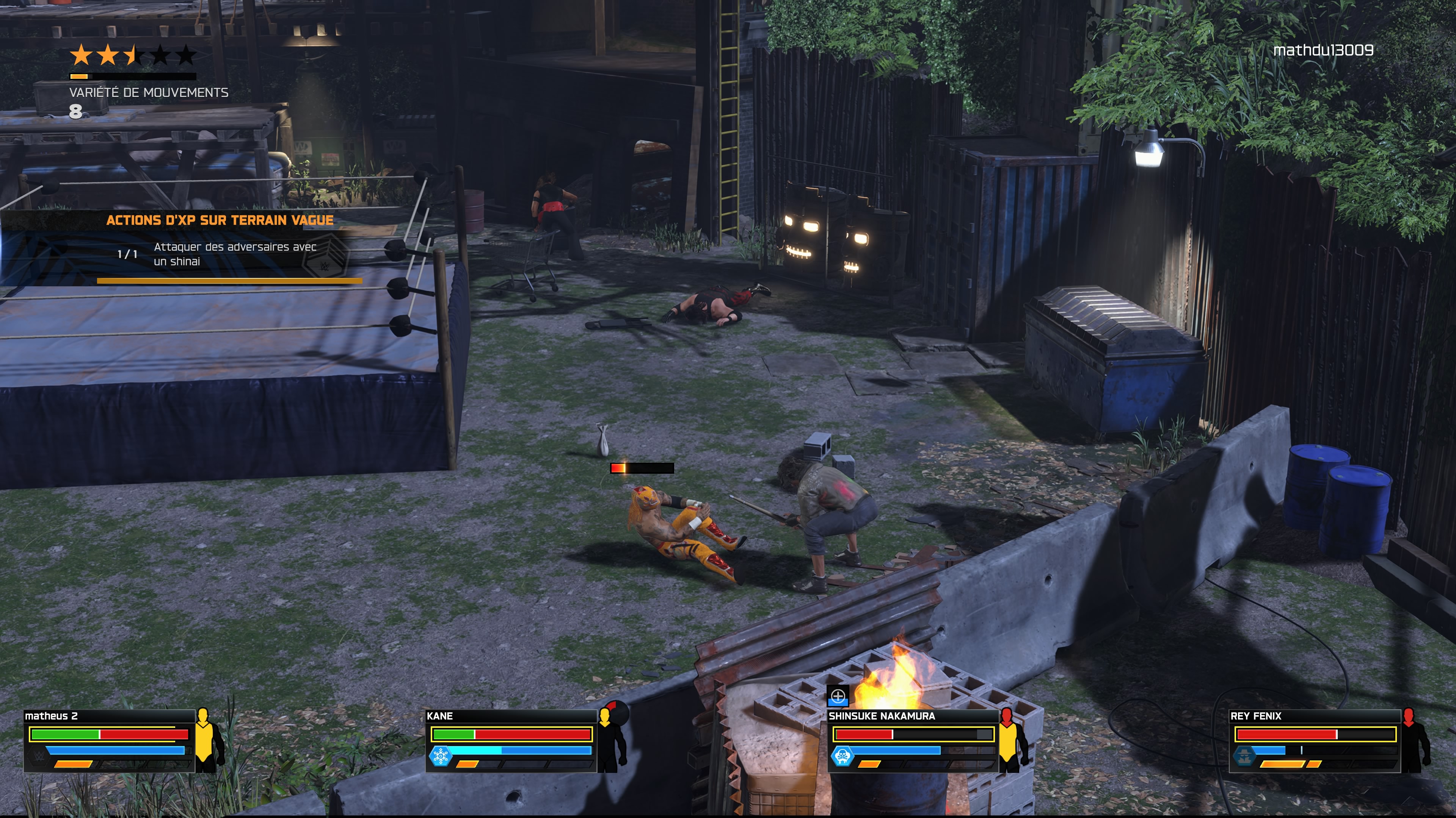 Comme nous avons pu l’évoquer dans notre article précédent, force est de constater que l’ajout des ces nouveaux types de matchs dans WWE 2K26 sont grisants à faire. Le I Quit match reste l’un des plus mythiques de la WWE, et il est jouissif de le voir arriver sur WWE 2K26, avec un nouveau mini-jeu plutôt classique mais amusant. Concernant Inferno, le principe de faire monter la température des flammes en faisant des prises puis en jetant le catcheur dans les flammes est clairement fun tout comme Poubelle, consistant à jeter le catcheur adverse dans une benne à ordures, et la fermer pour gagner. Concrètement, en plus de Three Stage of Hell donnant l’autorisation aux joueurs de choisir trois types de match à jouer successivement, ces ajouts font du bien et portent le total de genres de match à plus de 31, ce qui est gargantuesque.