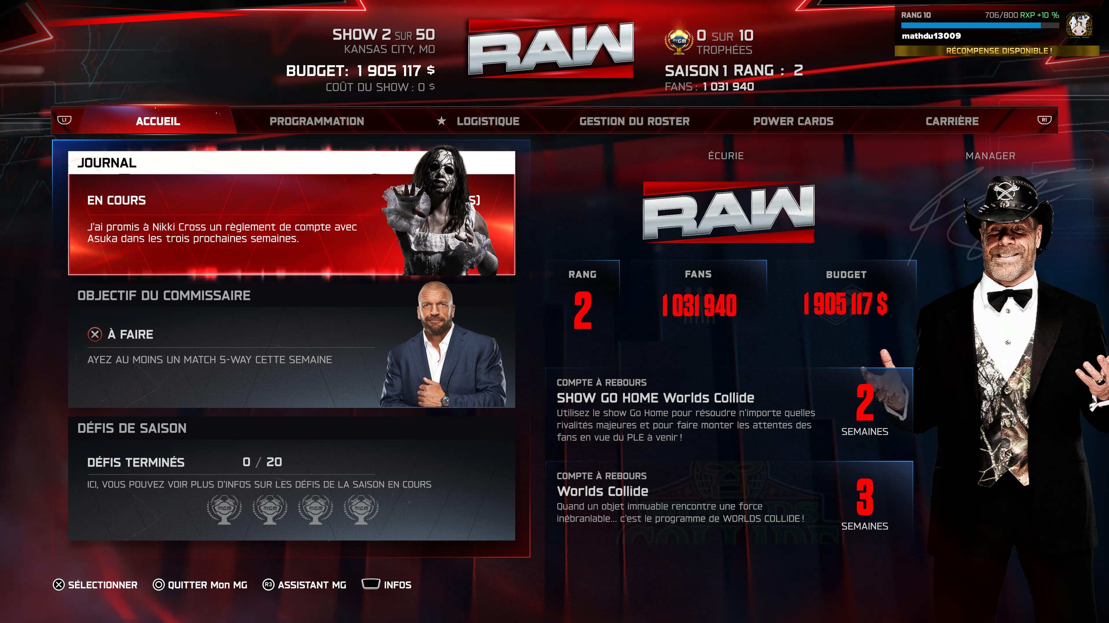 Enfin pour le reste, à savoir les modes mon GM et Univers de WWE 2K26, ils s’améliorent par petites touches. En somme, ne vous attendez pas à une grosse révolution pour ces modes, car le principe reste le même. D’un côté avec Mon GM, vous devez toujours choisir votre manager contre un autre contrôlé par l’IA, et votre but sera bêtement de devenir le meilleur show. Vous devez effectivement confectionner des shows plus intéressants que la concurrence, avec la possibilité de les simuler, ou les regarder si vous voulez être juste spectateur de votre propre show, que vous fabriquez de A à Z. Pour ce qui est ensuite de Univers, ce sera la possibilité de faire son propre show en mode bac à sable, ou bien avec les superstars en place. La grosse nouveauté cette année est justement l’ajout d’un peu plus d’images à implémenter dans votre show, mais aussi des promos et des rivalités plus poussées. Et comme Mon GM, vous pouvez regarder votre propre show comme si vous étiez sur Netflix.