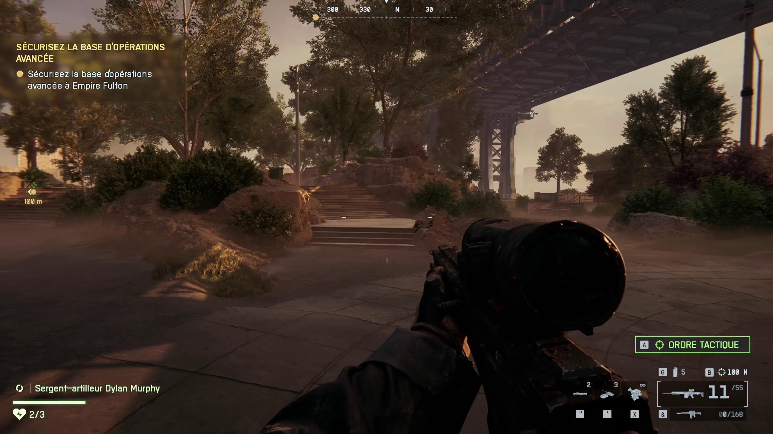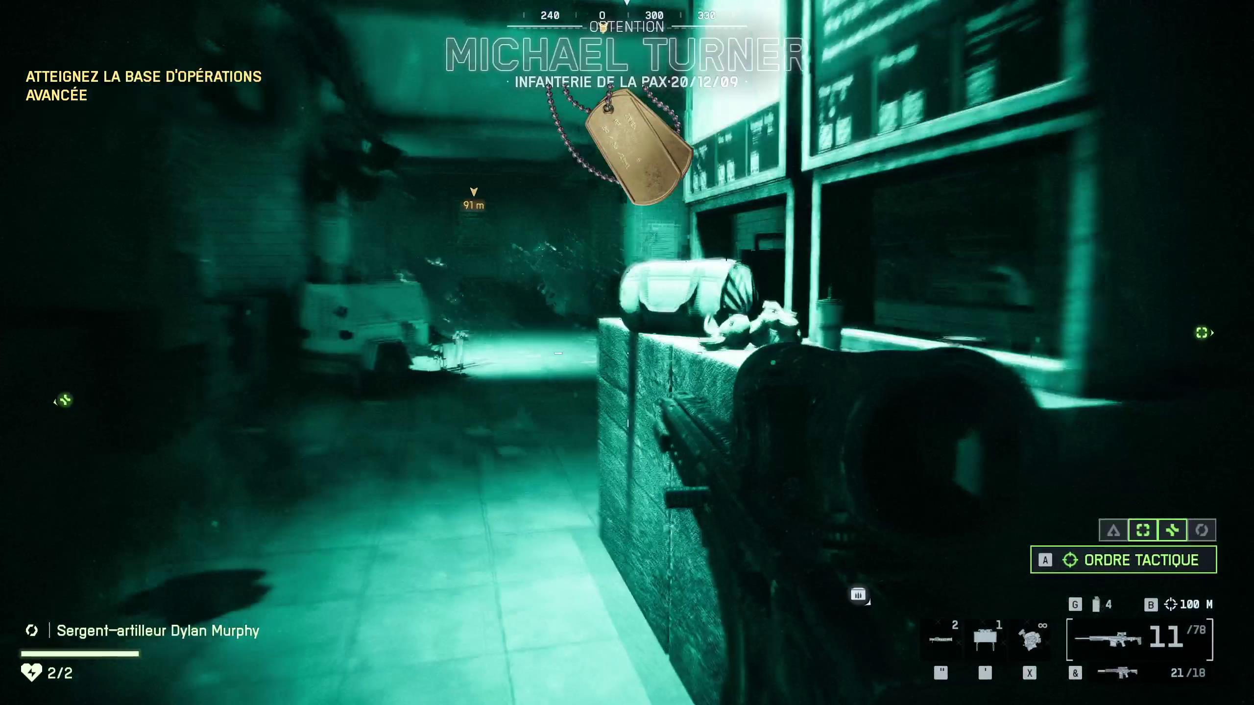 - Le dernier se trouve dans un petit parc lorsque vous arrivez près du pont. Passez le stand de hotdog et prenez le chemin de gauche (parmi les trois en face de vous comme sur la première image ci-dessous) et montez les escaliers. Sur votre gauche, vous devriez voir un cadavre de soldat. Le « Dog Tag » se trouve juste à côté de lui, au sol.