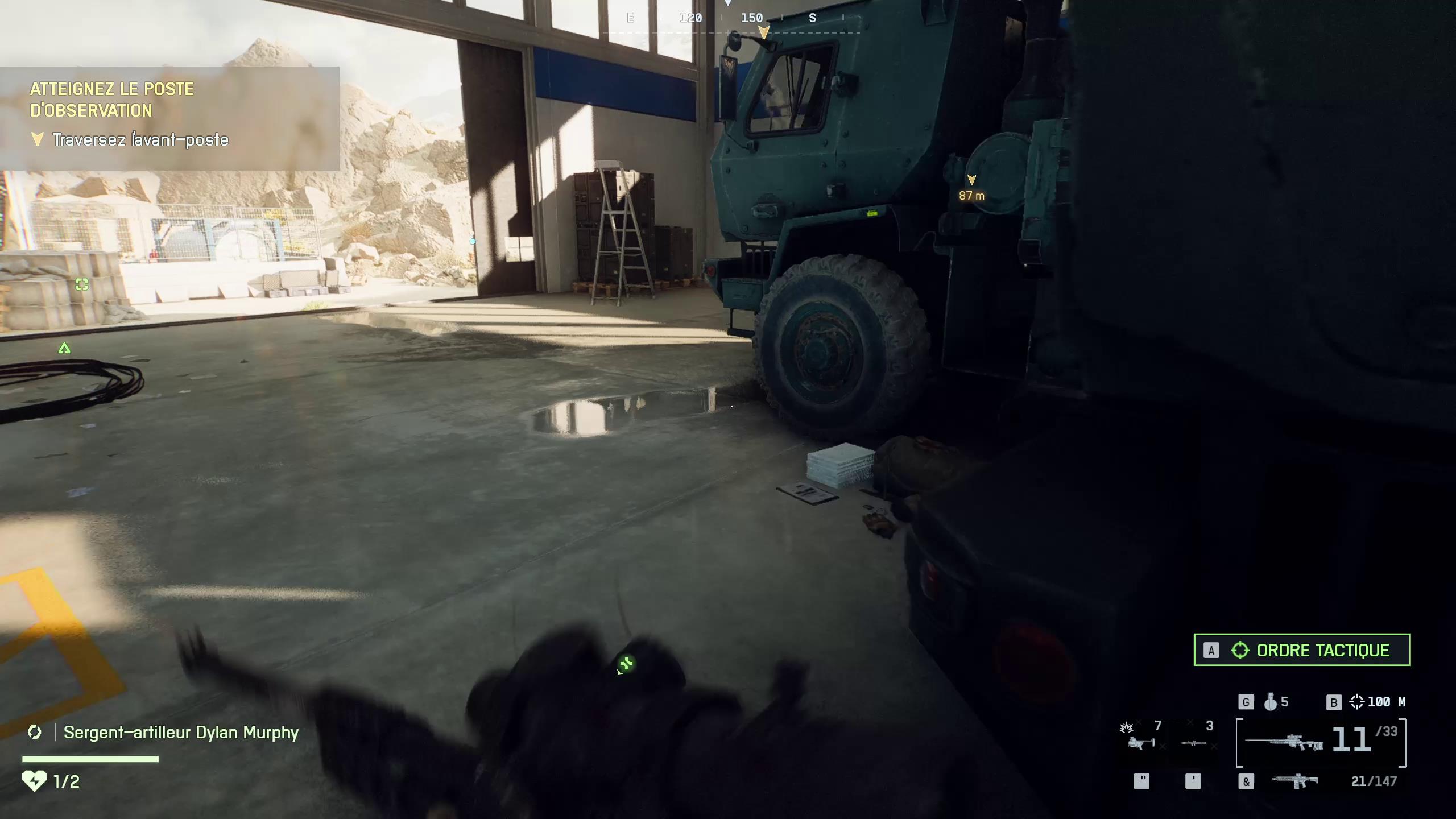 - Le premier se trouve au sol dans un hangar à côté d’un gros camion lorsque vous traversez l’avant-poste.