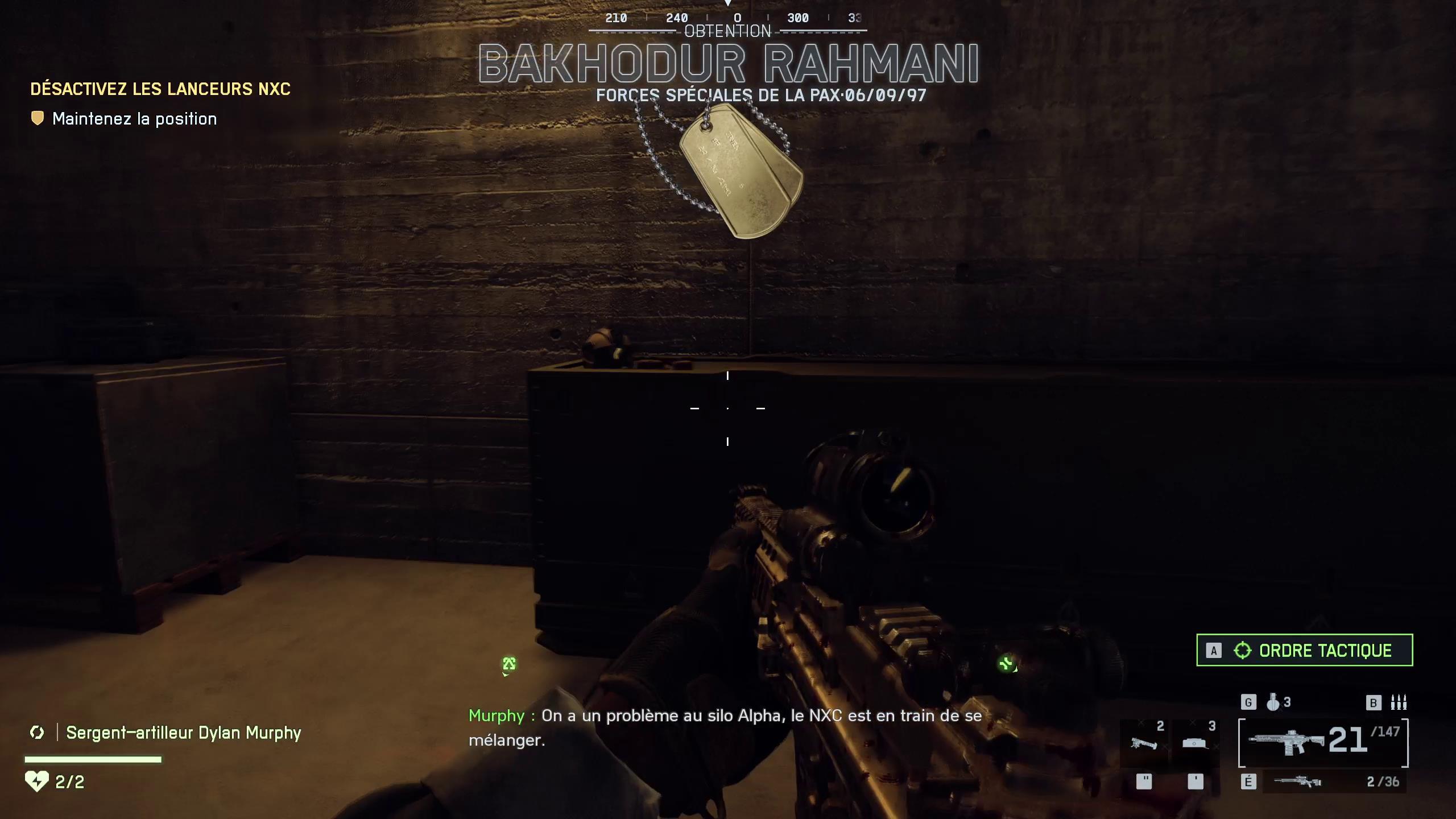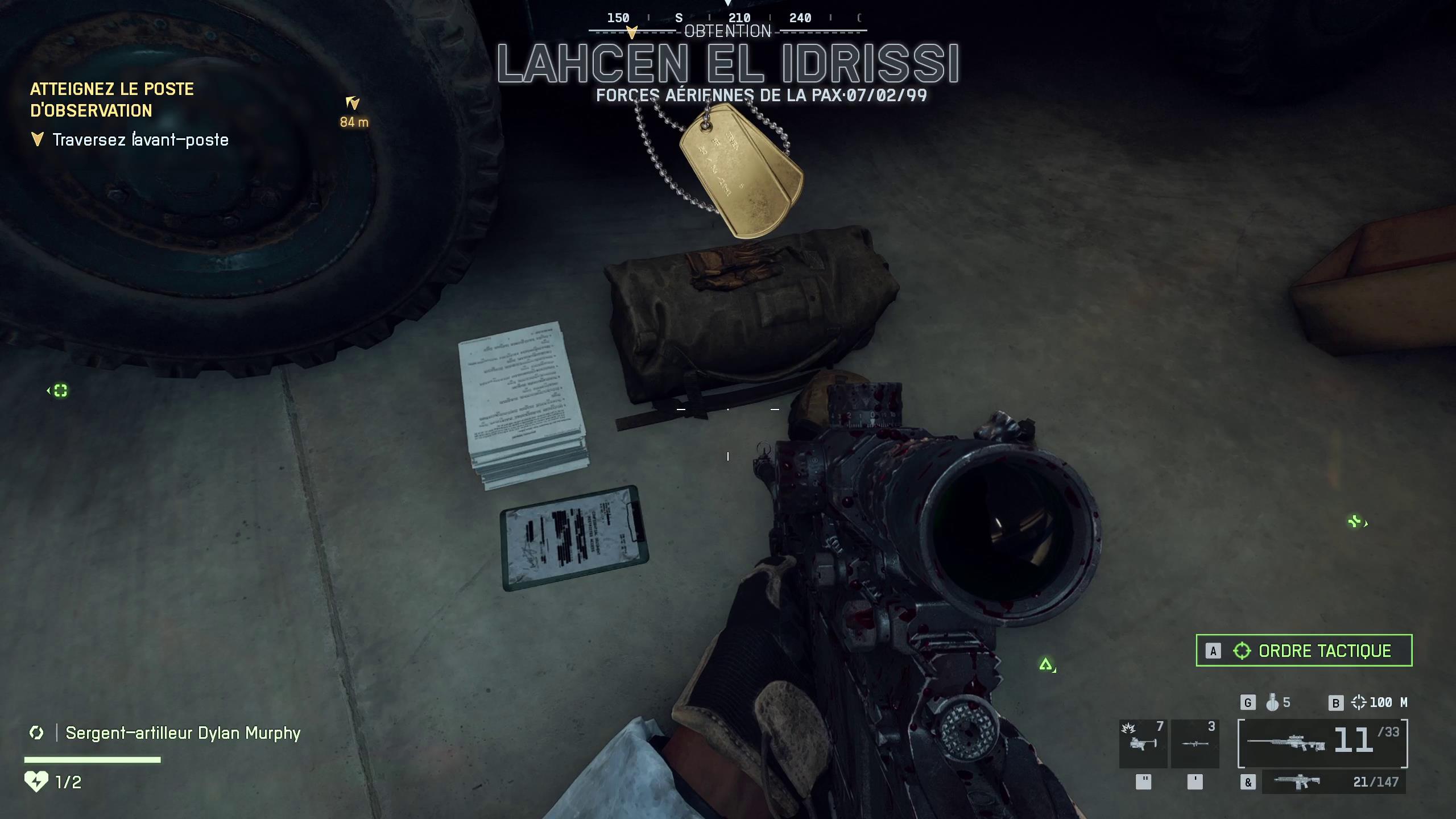 - Le troisième dog tag se trouve dans le silot Alpha, posé sur un bloc à côté d’un casque.