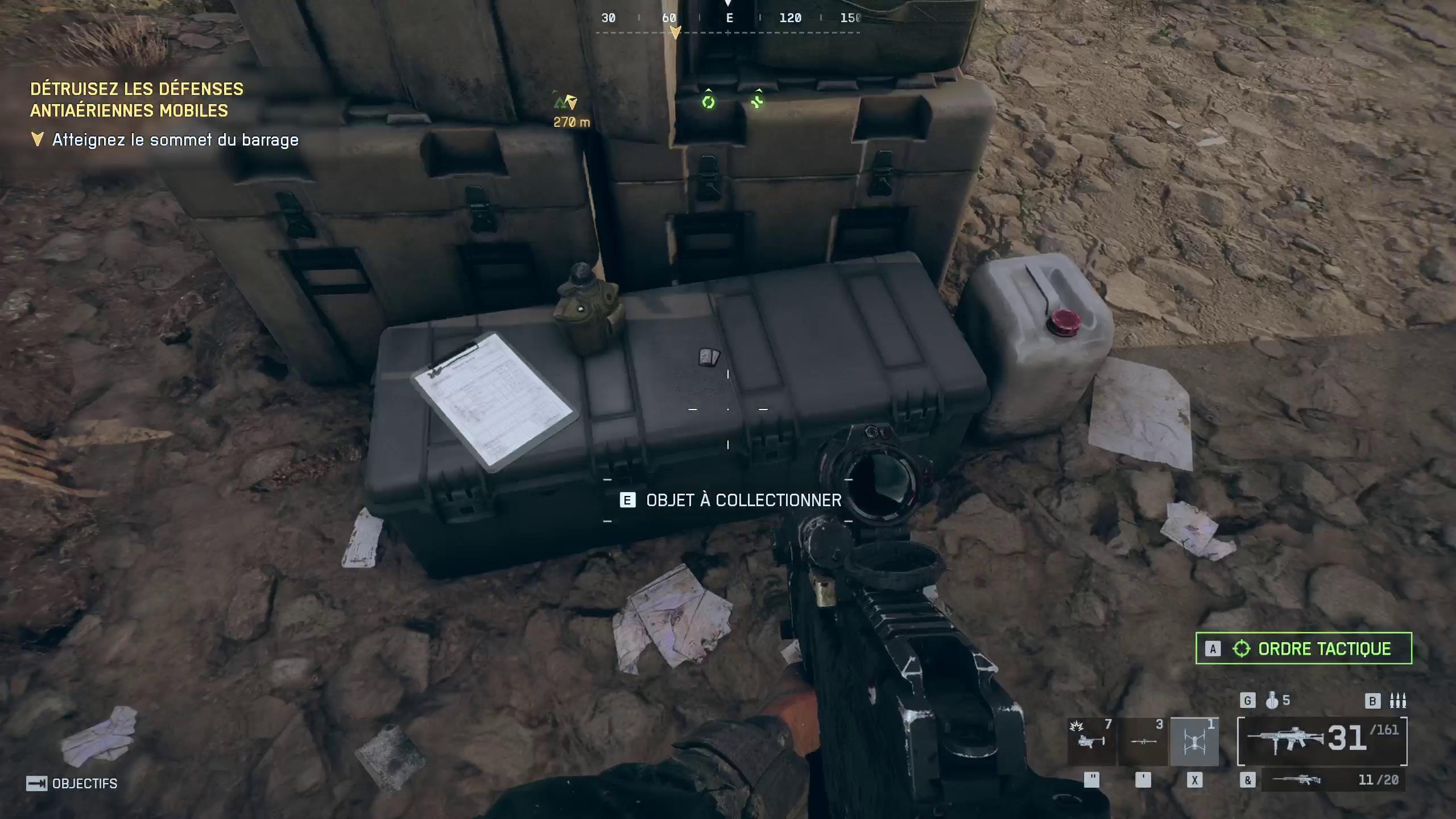 - Juste avant d’atteindre le sommet du barrage, cherchez près du monte-charge, là où vous avez laissé les quads. L’objet se trouve sur une caisse.