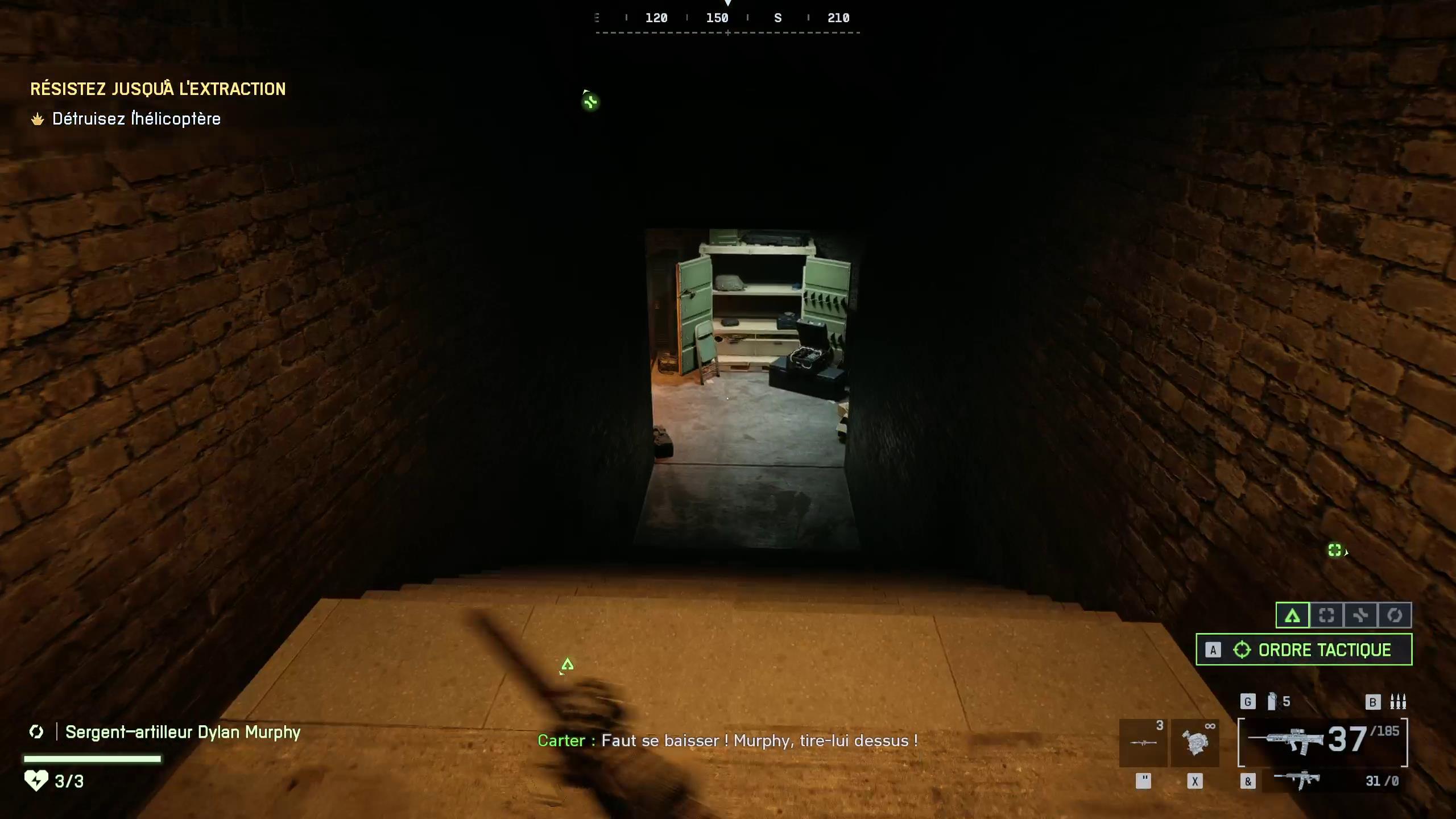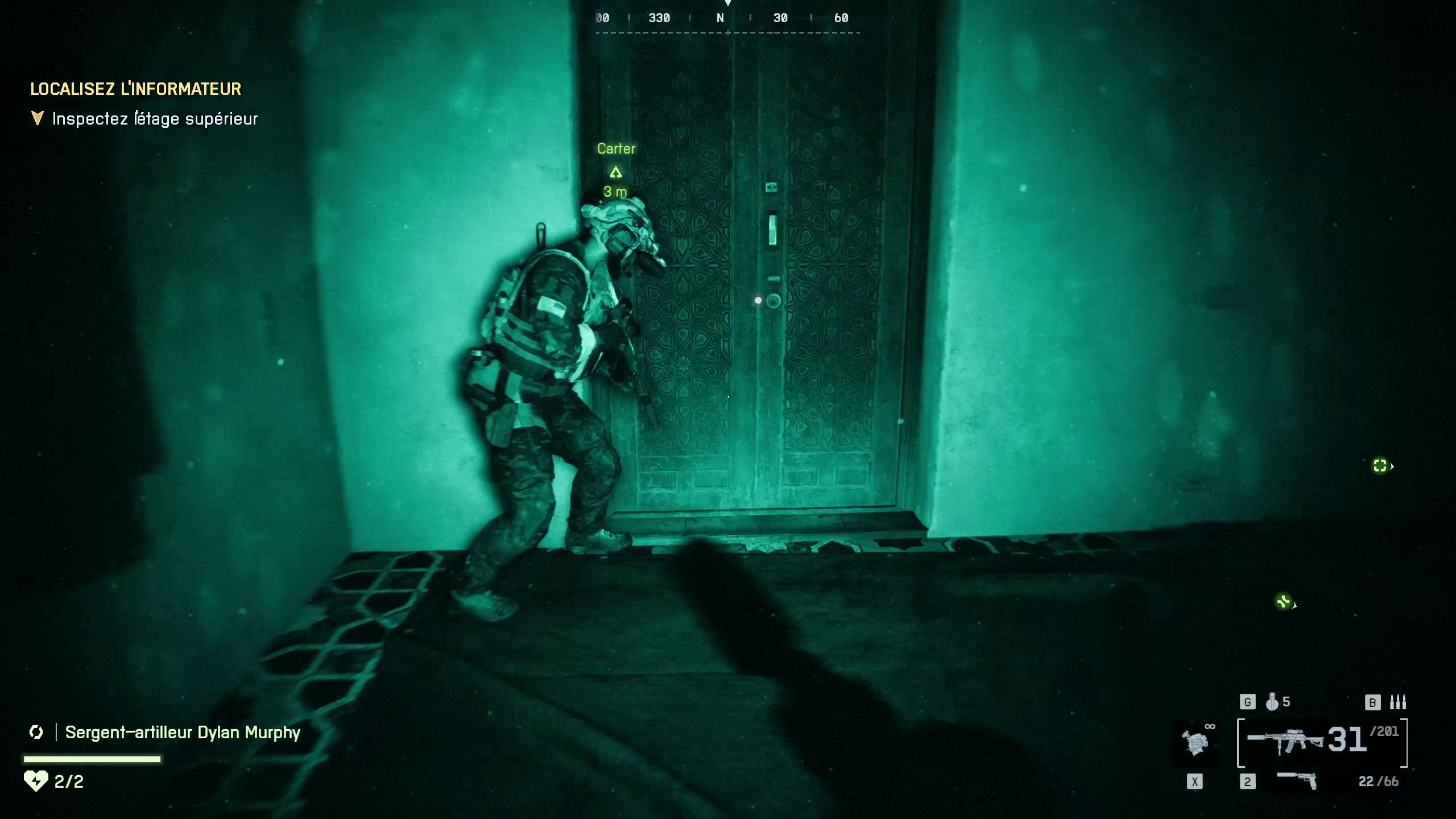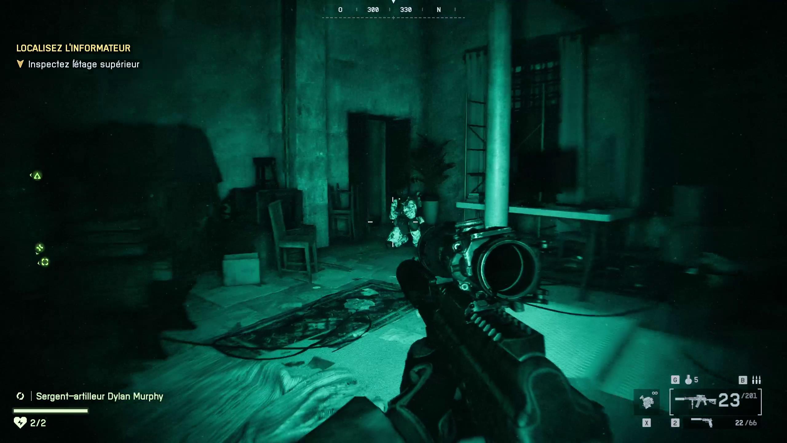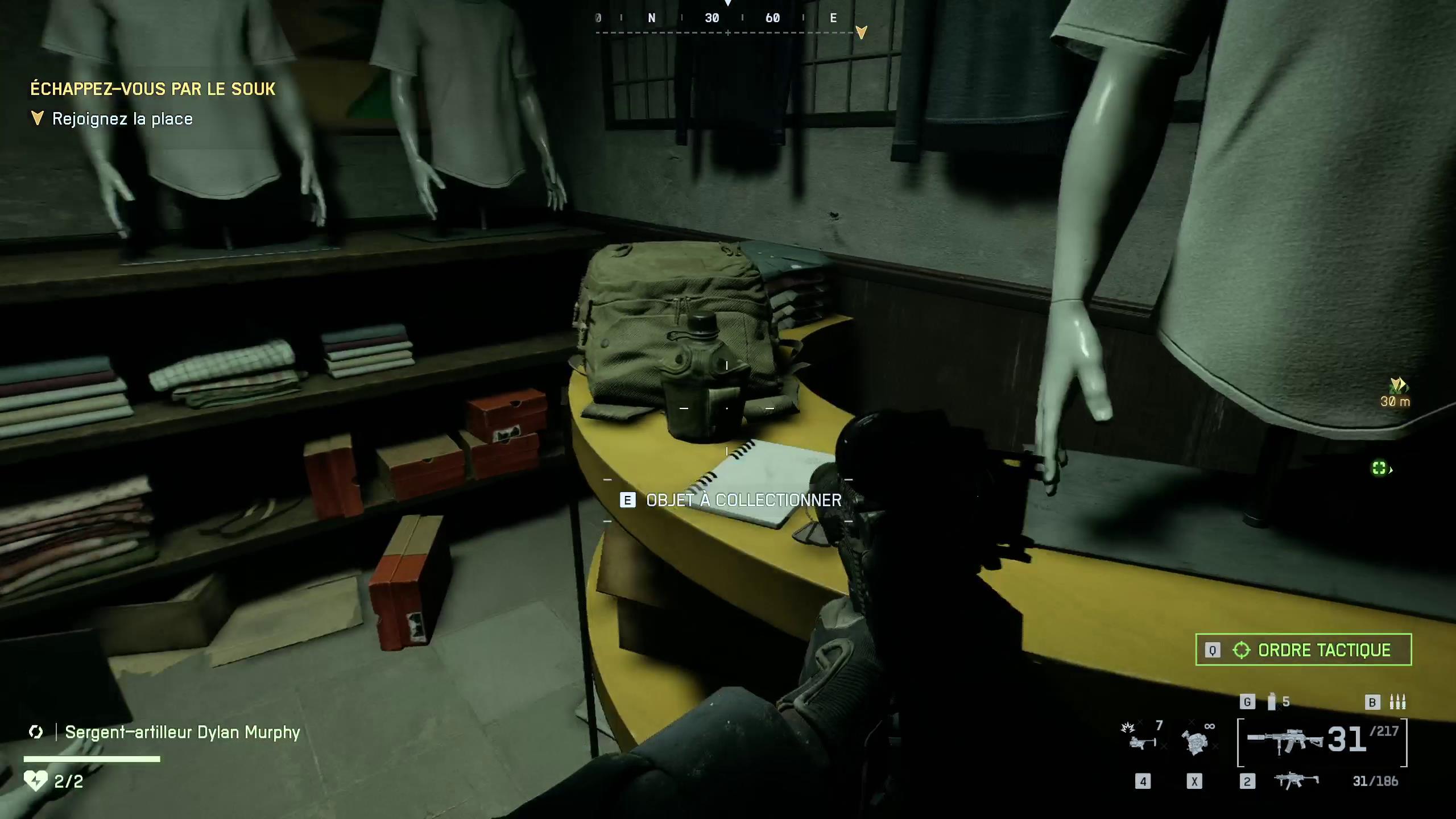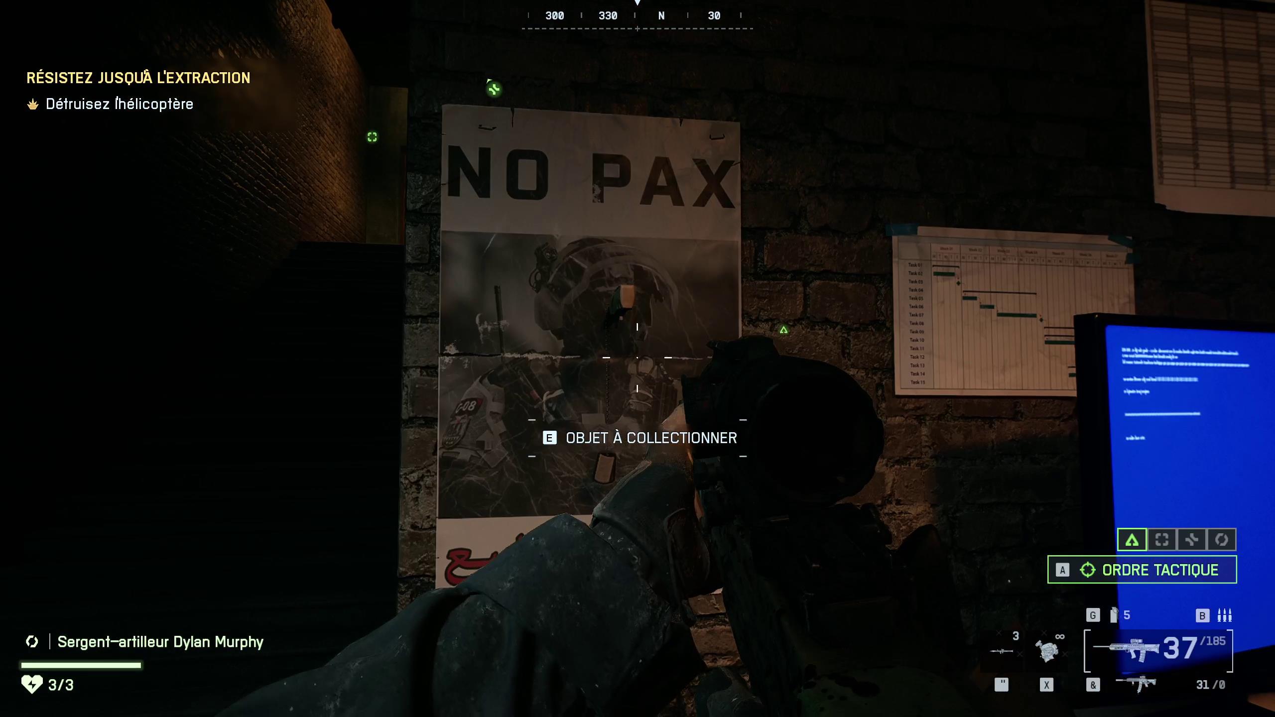- Lorsque vous devez tenir la position, un hélicoptère débarque et une porte se débloque afin que vous puissiez prendre un lanceur. Dans cette pièce, regardez l’affiche de la PAX à gauche du PC pour dénicher le dernier objet.