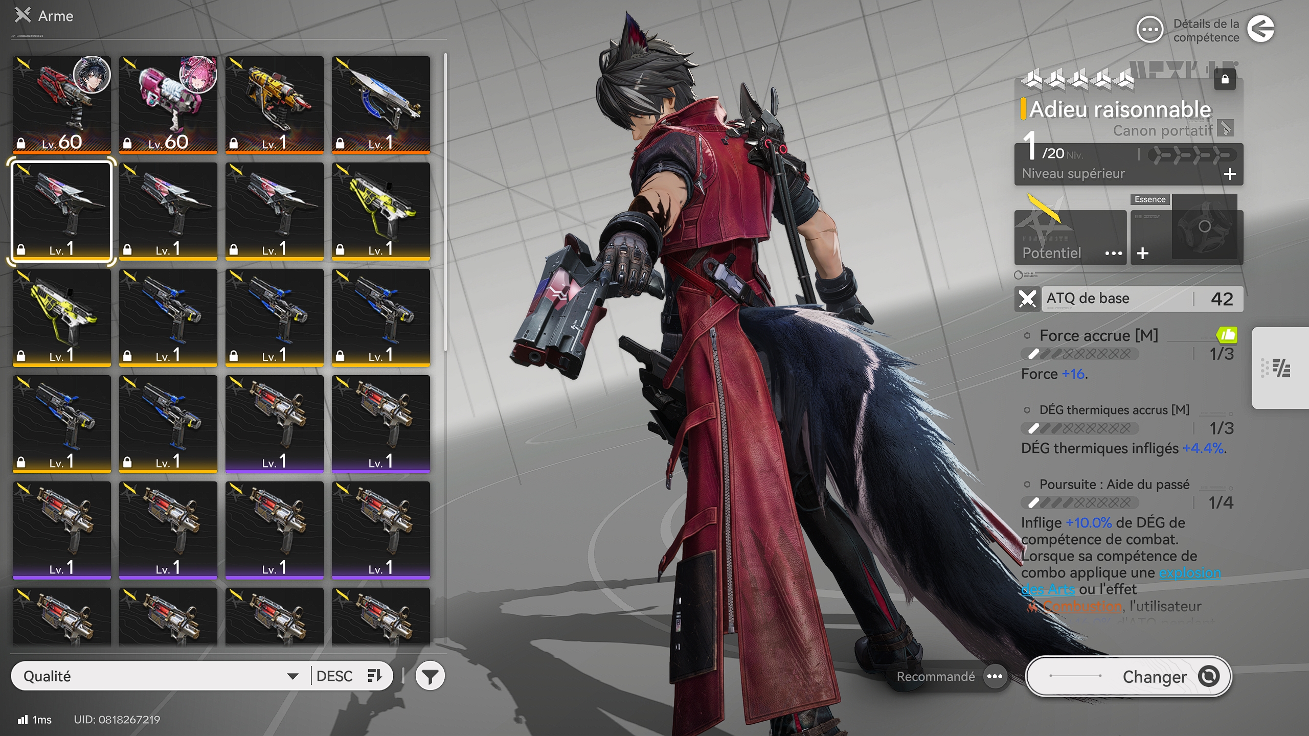 Contrairement à d’autres jeux où il faut farmer des donjons de manière répétitive, les équipements possèdent des statistiques fixes et doivent exclusivement être fabriqués via le menu d’équipement grâce aux ressources produites par vos usines. Le tout est d’équiper des pièces qui augmentent spécifiquement leur attribut principal (indiqué en jaune) et leur attribut secondaire, offrant ainsi des bonus d’attaque exponentiels.