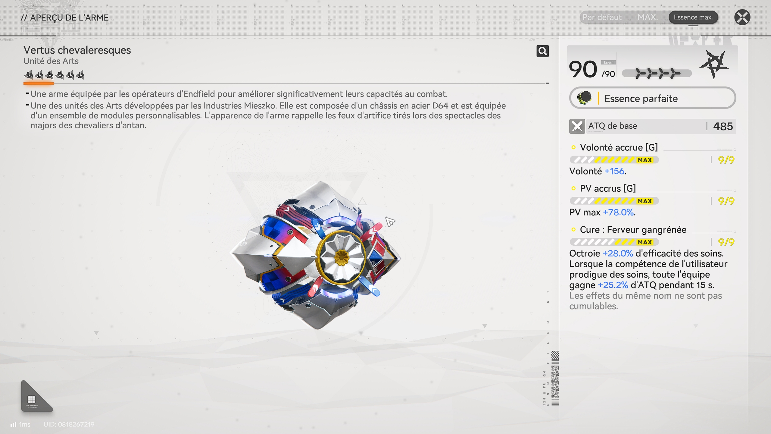Concernant l’arme de Xaihi, bien évidemment, son arme signature “Vertus chevaleresque” est la meilleure que vous pouvez avoir. En revanche, au cas où vous n’auriez pas eu assez de chance, sachez qu’une autre arme peut faire l’affaire :